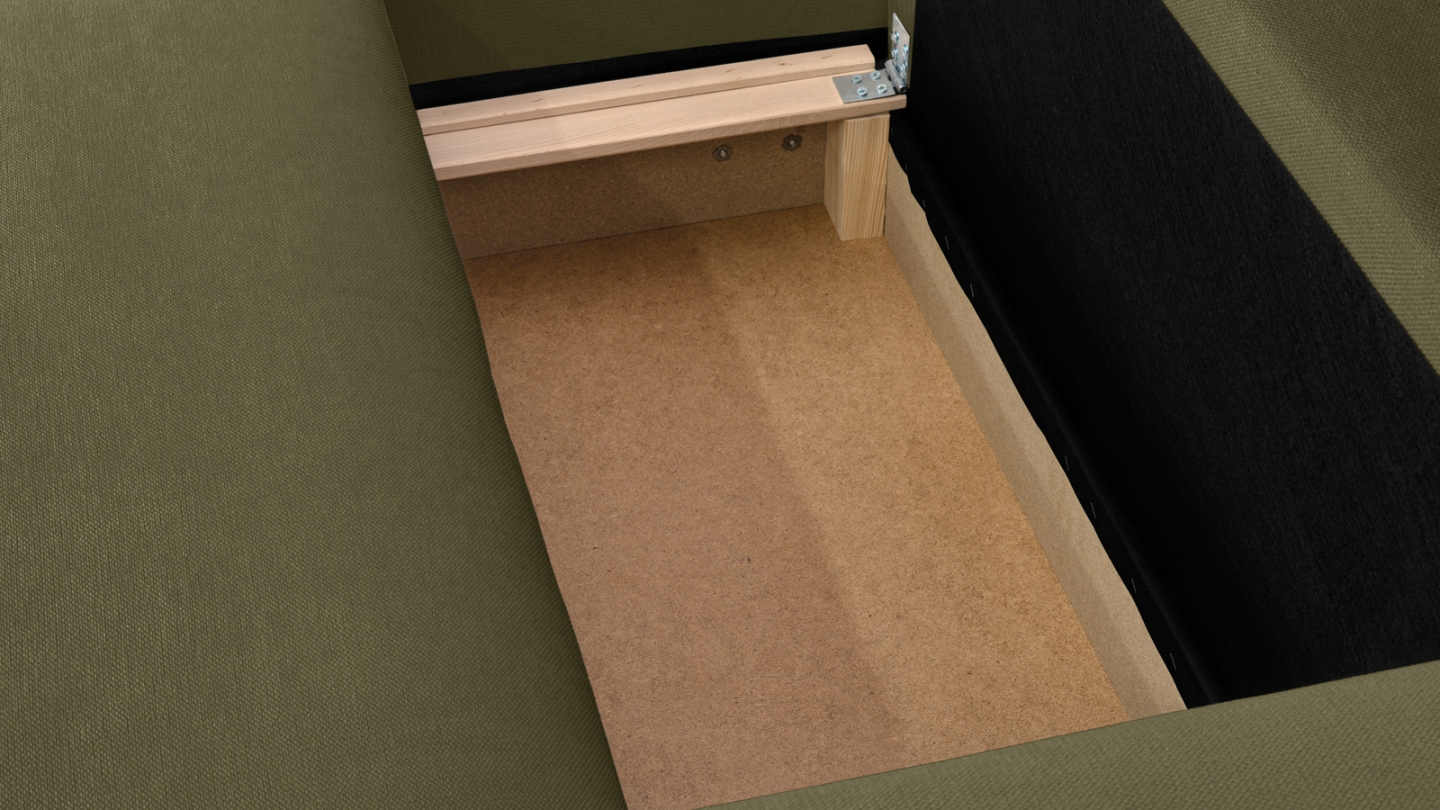 Fonctionnel sans rien sacrifier à l’esthétique, l’Asti se transforme facilement en couchage d’appoint (137 x 190 cm), pratique pour les invités ou les soirées improvisées. Il intègre également un coffre de rangement discret sous l’assise, où vous pourrez glisser plaids, coussins ou linge de lit pour un salon toujours bien rangé.