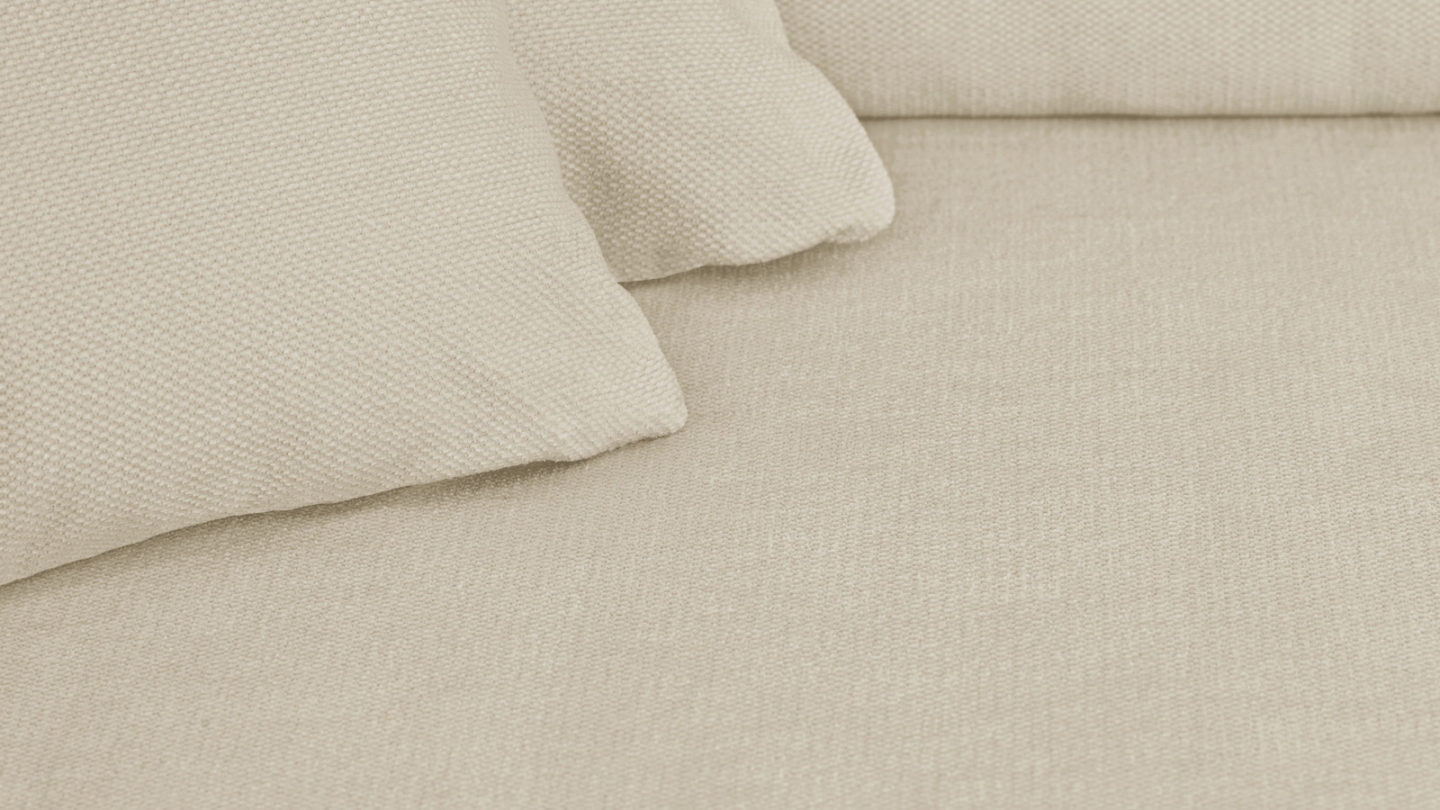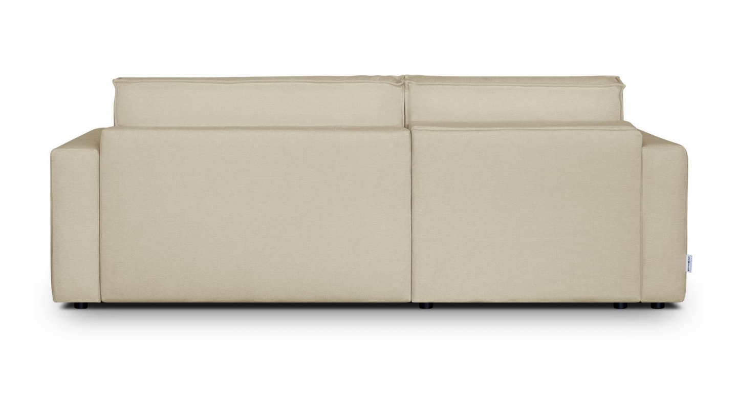 Le revêtement chenille 100 % polyester, certifié Oeko-Tex, offre un toucher agréable, légèrement velouté, tout en étant résistant à l’usage. Son grammage de 310 g/m² assure une belle tenue dans le temps. Le coloris beige foncé, neutre mais sophistiqué, s’adapte à tous les styles d’intérieur : minimaliste, bohème, ou plus classique. Les 3 coussins déco assortis ajoutent une touche de douceur et renforcent le confort visuel du canapé.