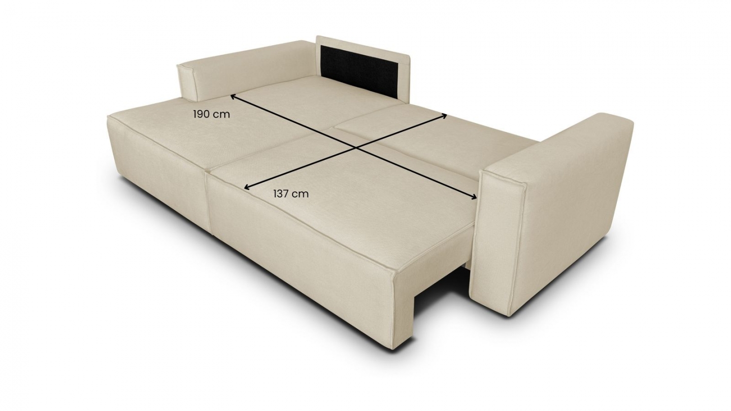 Mais l’Asti sait aussi se rendre indispensable au quotidien. En quelques secondes, il se transforme en lit d’appoint spacieux (137 x 190 cm), idéal pour héberger confortablement vos invités. Un coffre de rangement sous l’assise permet de garder couvertures, coussins ou linge de lit toujours à portée de main.