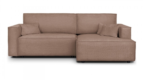 Le canapé d’angle Asti rose poudré séduit par sa présence douce et lumineuse.