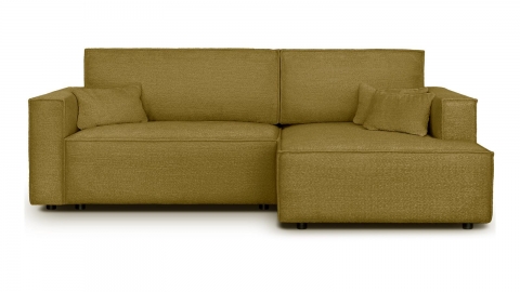 Canapé d'angle convertible 3 places - Asti• Confort : équilibré : accueil moelleux, soutien ferme Couleur : jaune moutarde Revêtement : velours côtelé certifié Oekotex - Petfriendly Angle à gauche (lorsqu'on est face au canapé) Coffre de rangement sous l'assise, pratique pour ranger plaids, couettes etc. Structure en bois massif certifié Assise en...