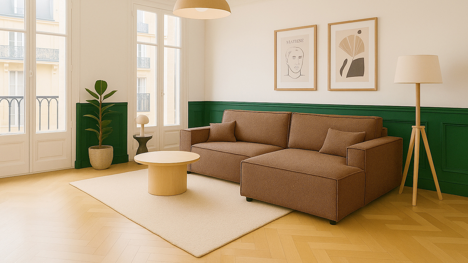 • Type d'angle : à droite (lorsqu'on se tient face au canapé)