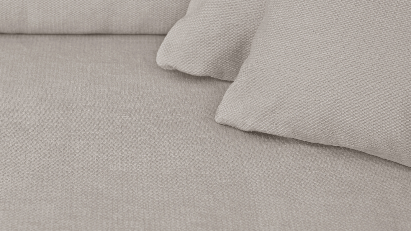 Son revêtement en tissu chenille, certifié Oeko-Tex, offre un toucher soyeux et une résistance adaptée à un usage quotidien. Les trois coussins déco inclus viennent souligner son design soigné et invitent à la détente.