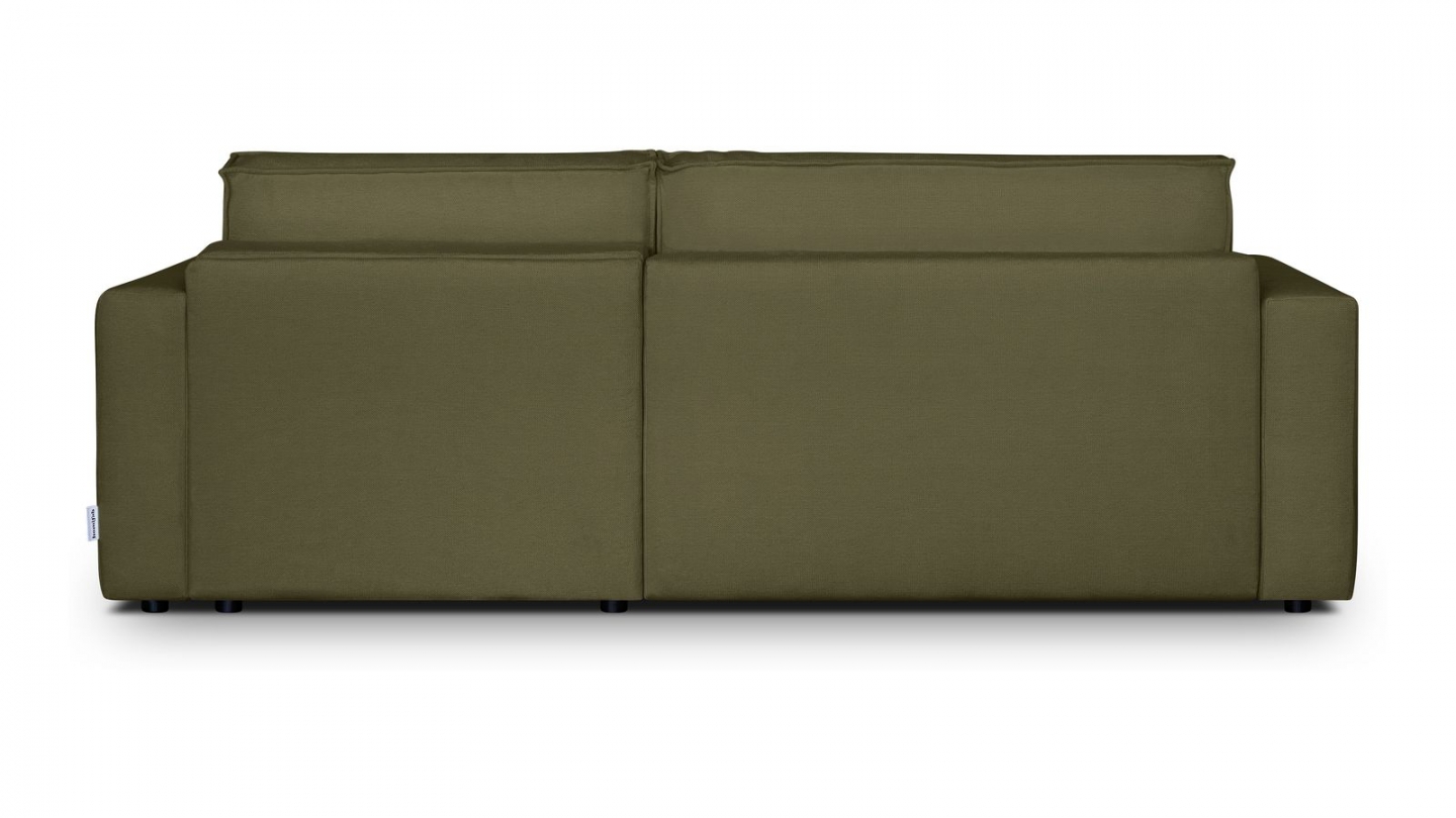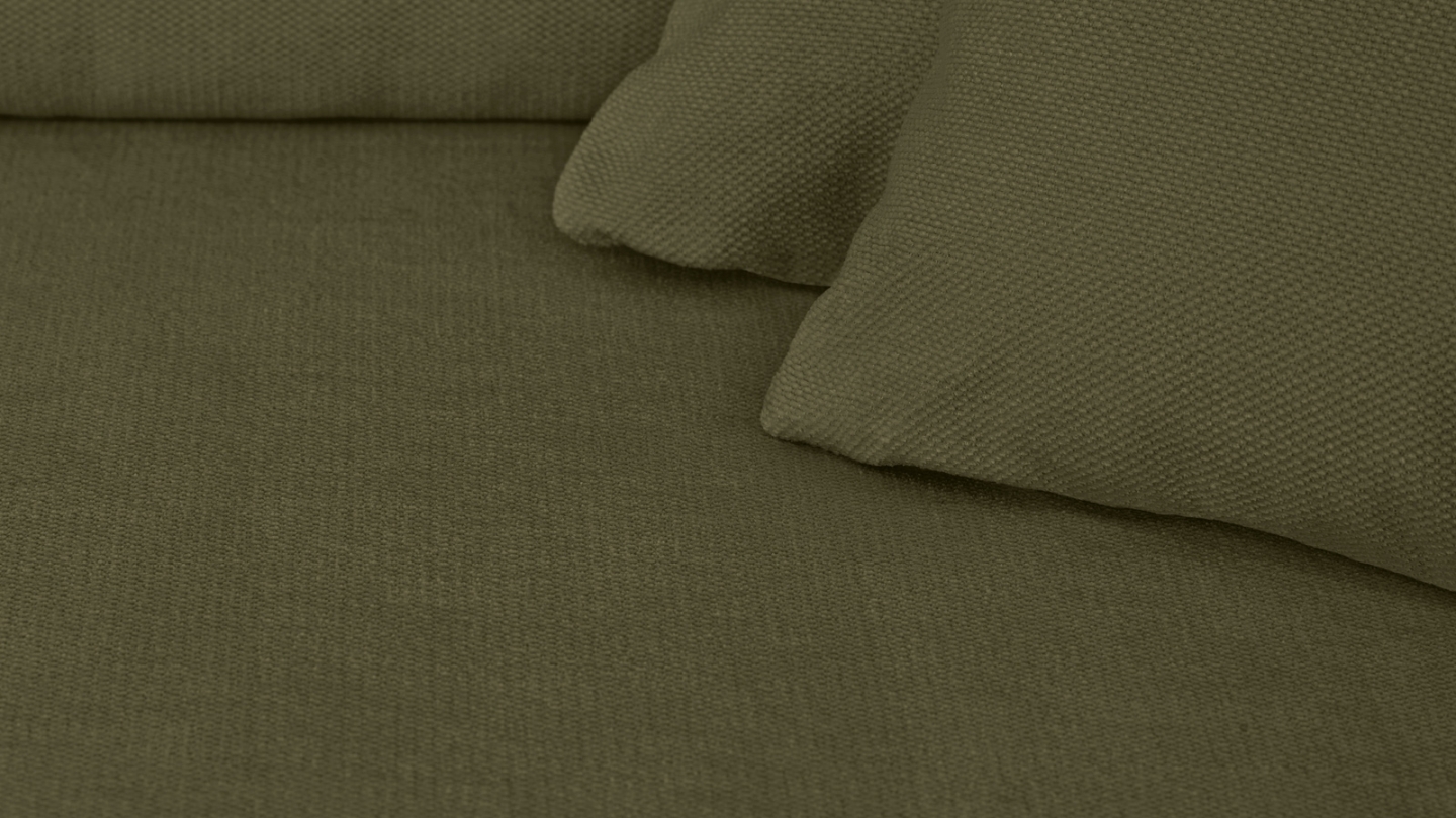 Son tissu chenille vert kaki 100 % polyester (310 g/m²), certifié Oeko-Tex, habille l’ensemble d’un effet texturé et mat qui capte joliment la lumière. Facile à accorder, ce vert apaisant apporte une note tendance à votre salon.