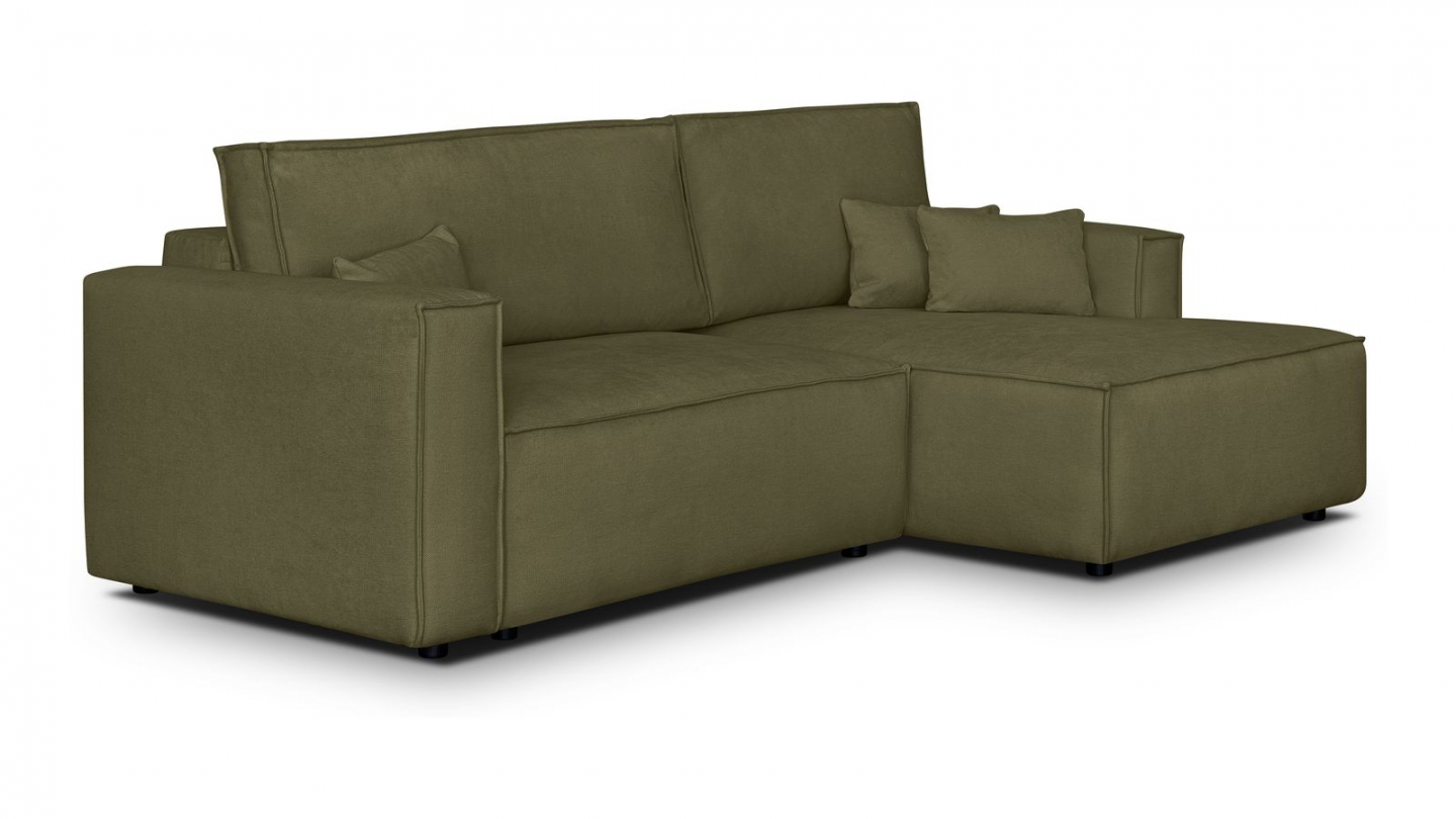 Grâce à sa silhouette épurée, ses lignes actuelles et son coloris vert kaki plein de douceur, le canapé d’angle convertible Asti a tout pour séduire les amateurs de design naturel et fonctionnel. C’est le choix idéal pour ceux qui veulent allier esthétique, confort et praticité, sans compromis.