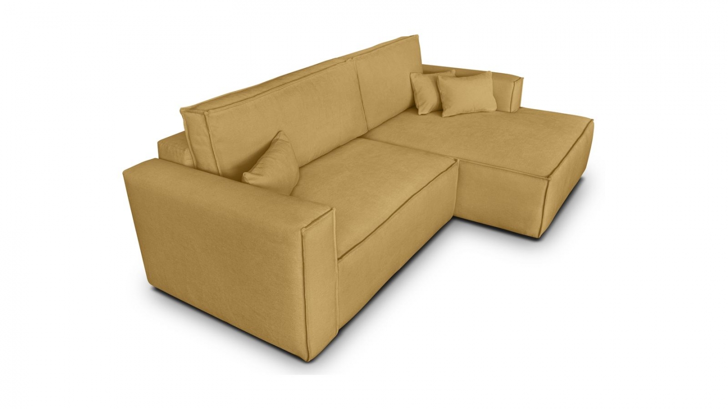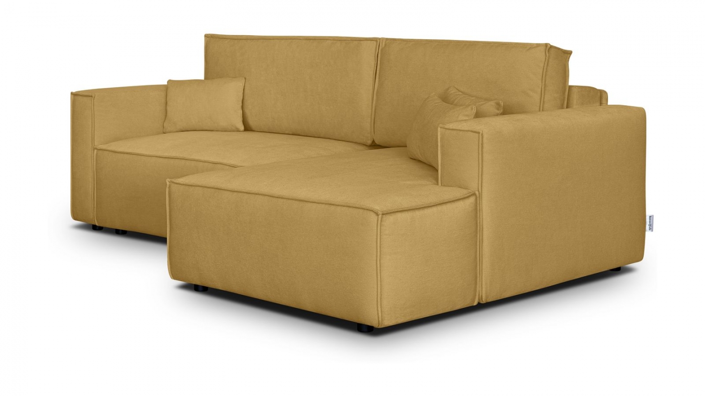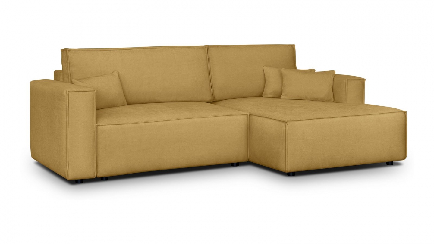 Le canapé d’angle Asti jaune moutarde donne instantanément du style et de la chaleur à votre pièce de vie.