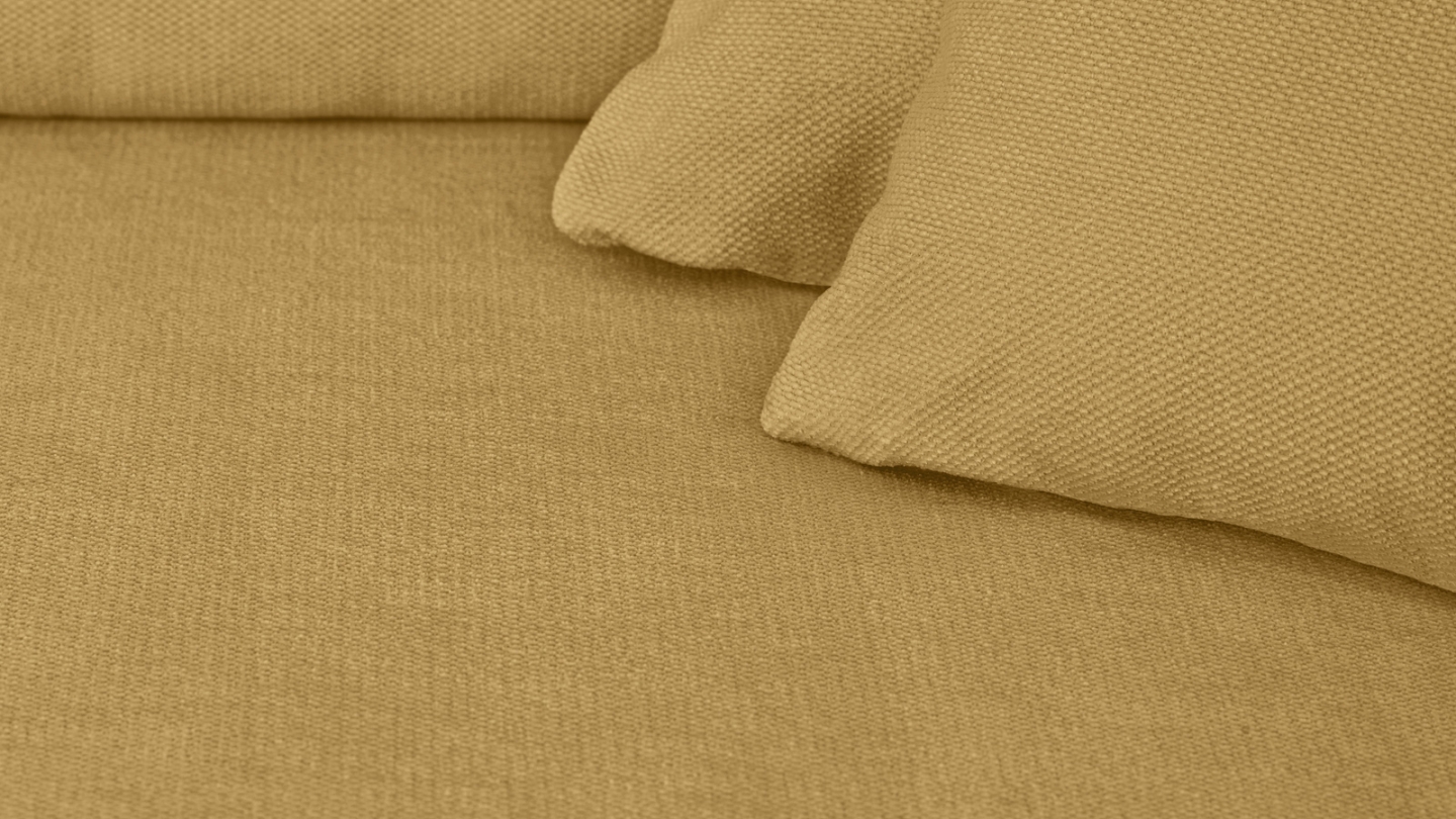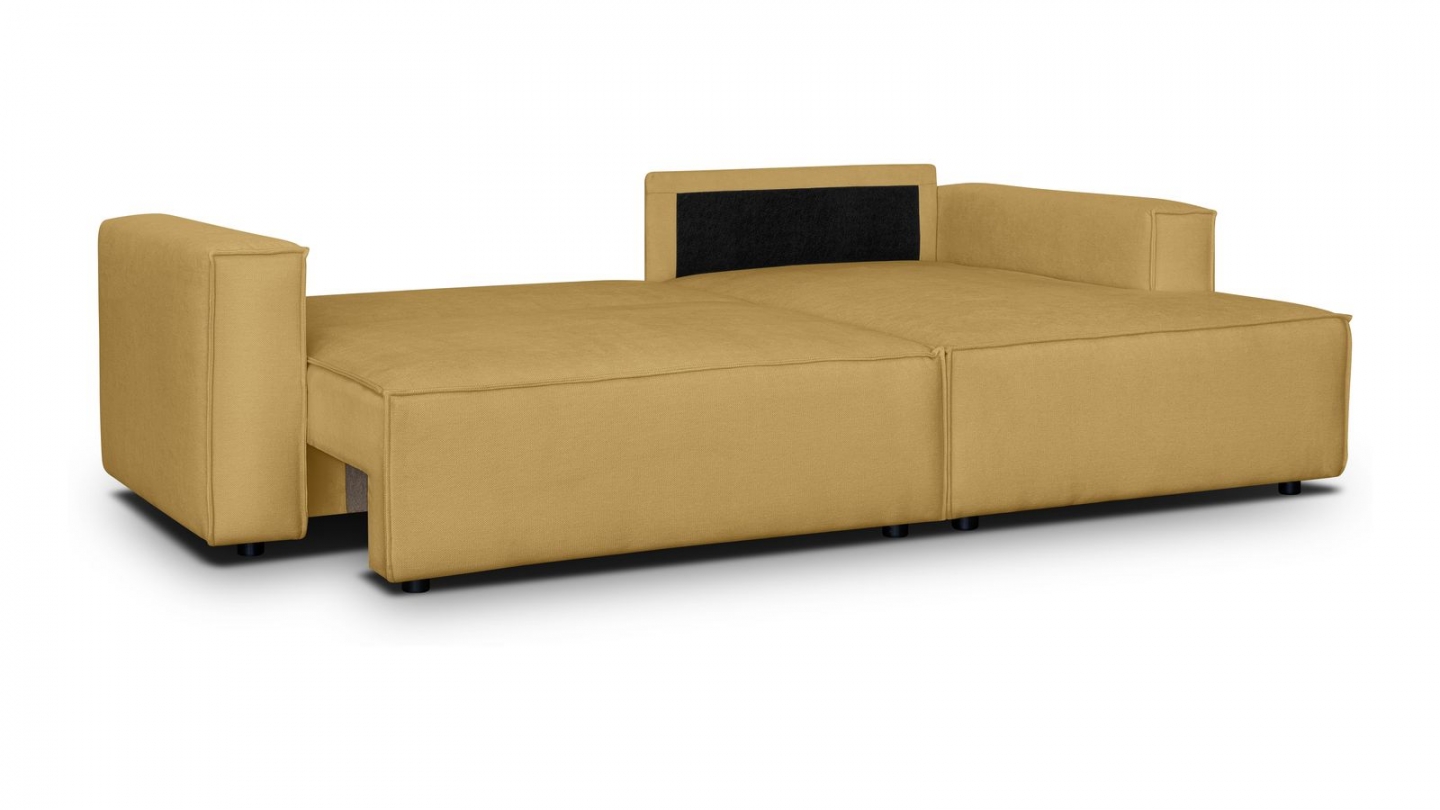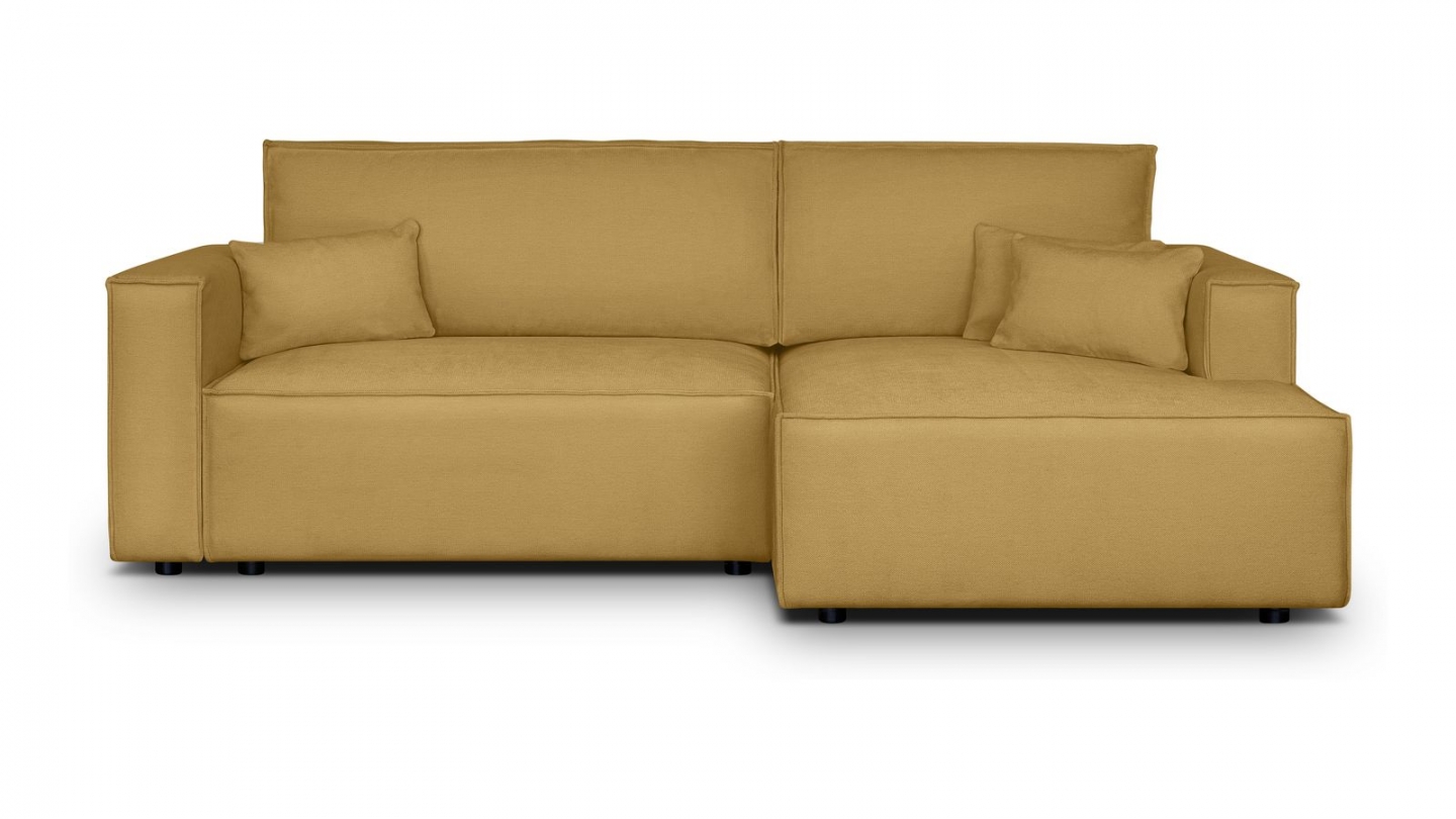 Le canapé d’angle Asti jaune moutarde donne instantanément du style et de la chaleur à votre pièce de vie.