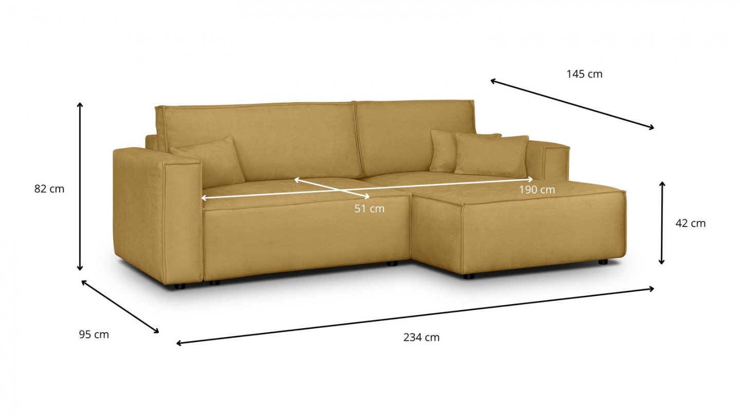 • Type d'angle : à droite (lorsqu'on se tient face au canapé)