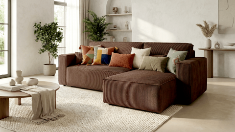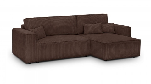 • Canapé d'angle convertible 4 places en velours côtelé moka