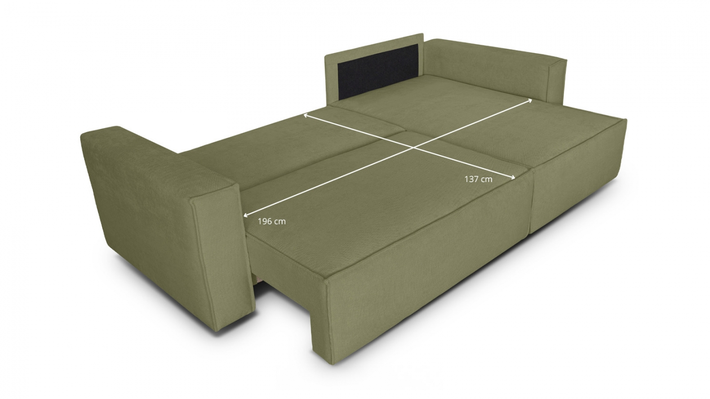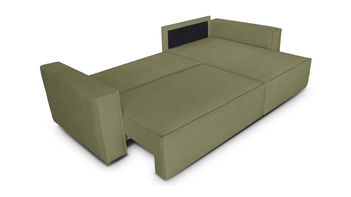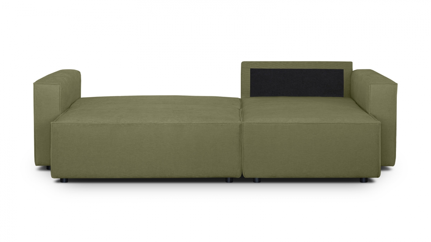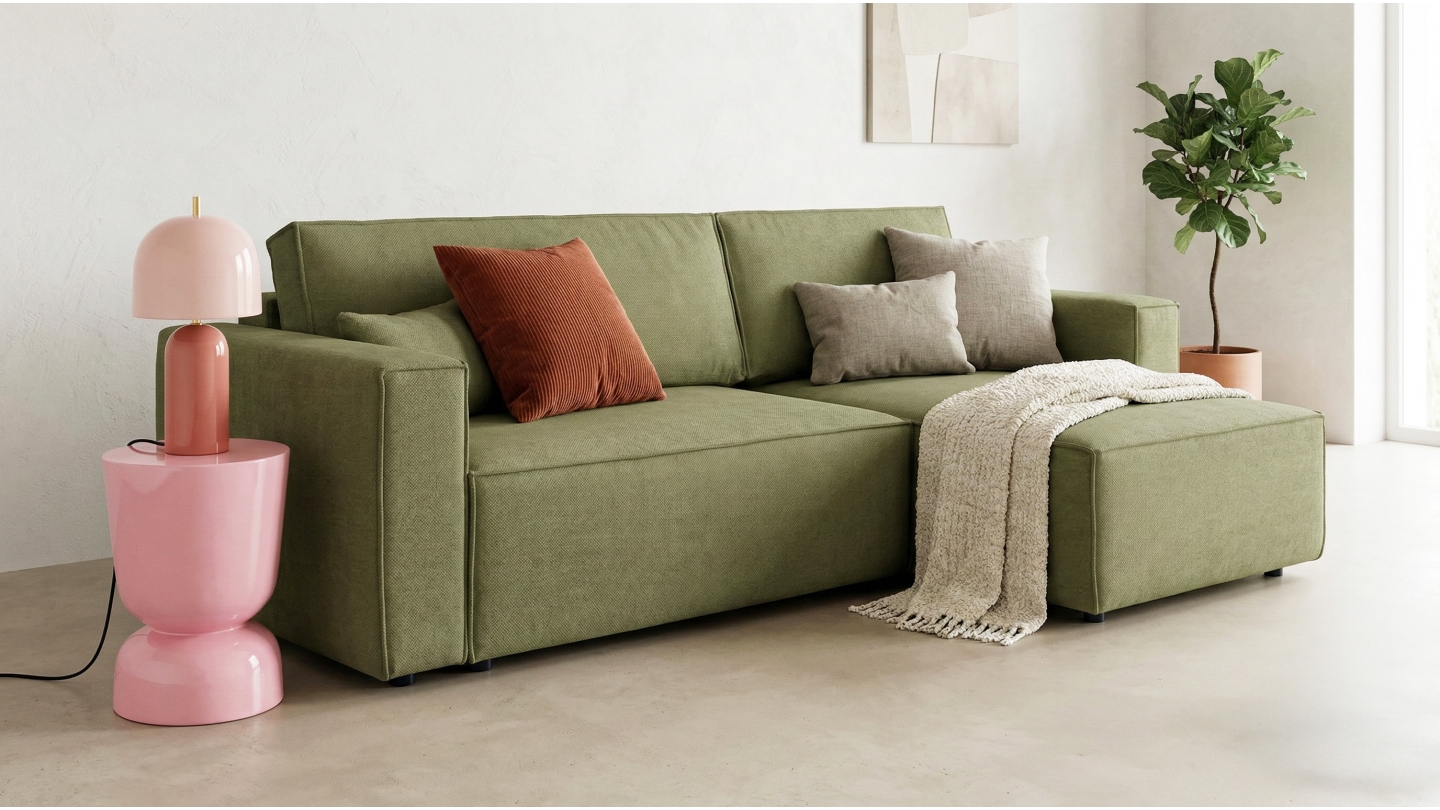 • Canapé d'angle convertible 4 places en tissu chenille vert olive