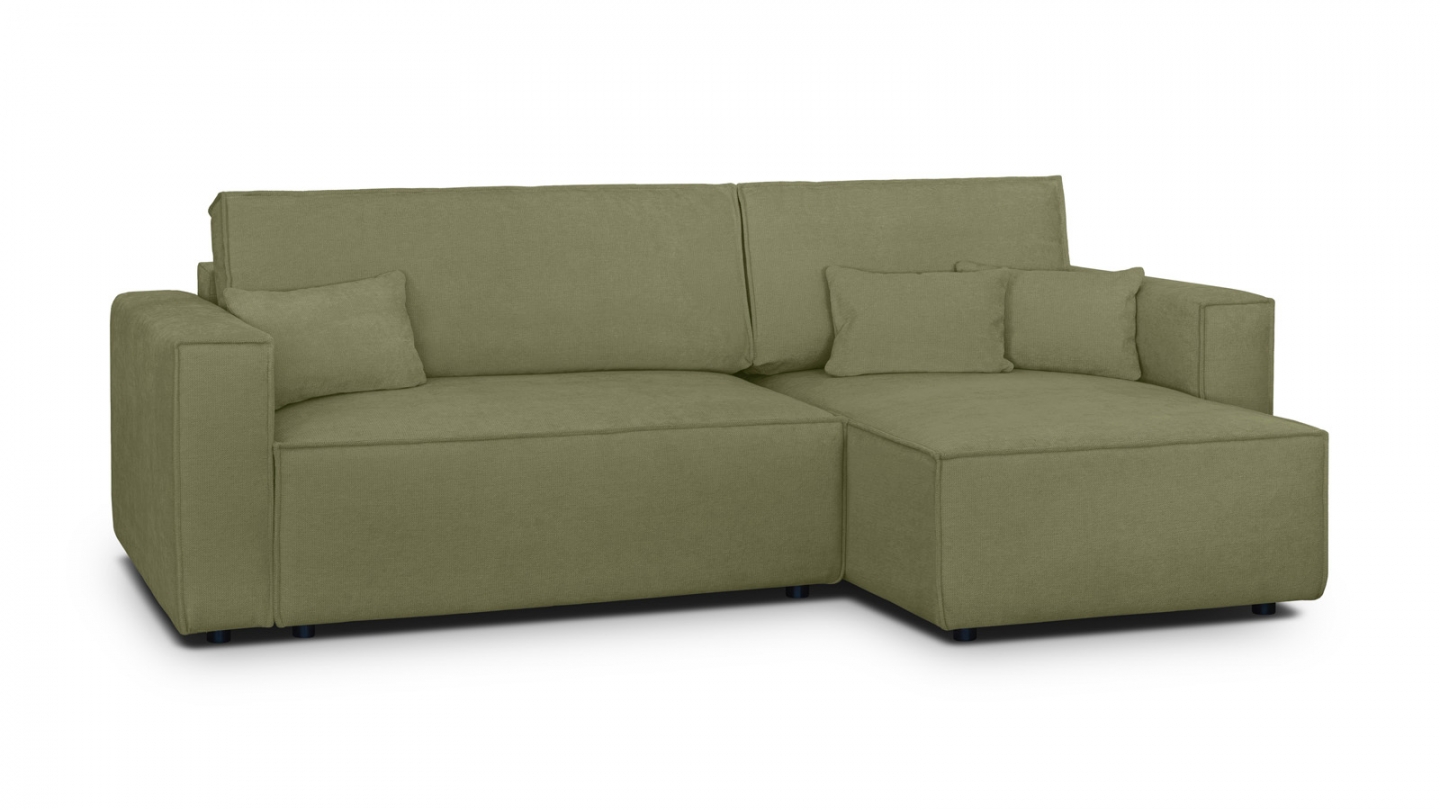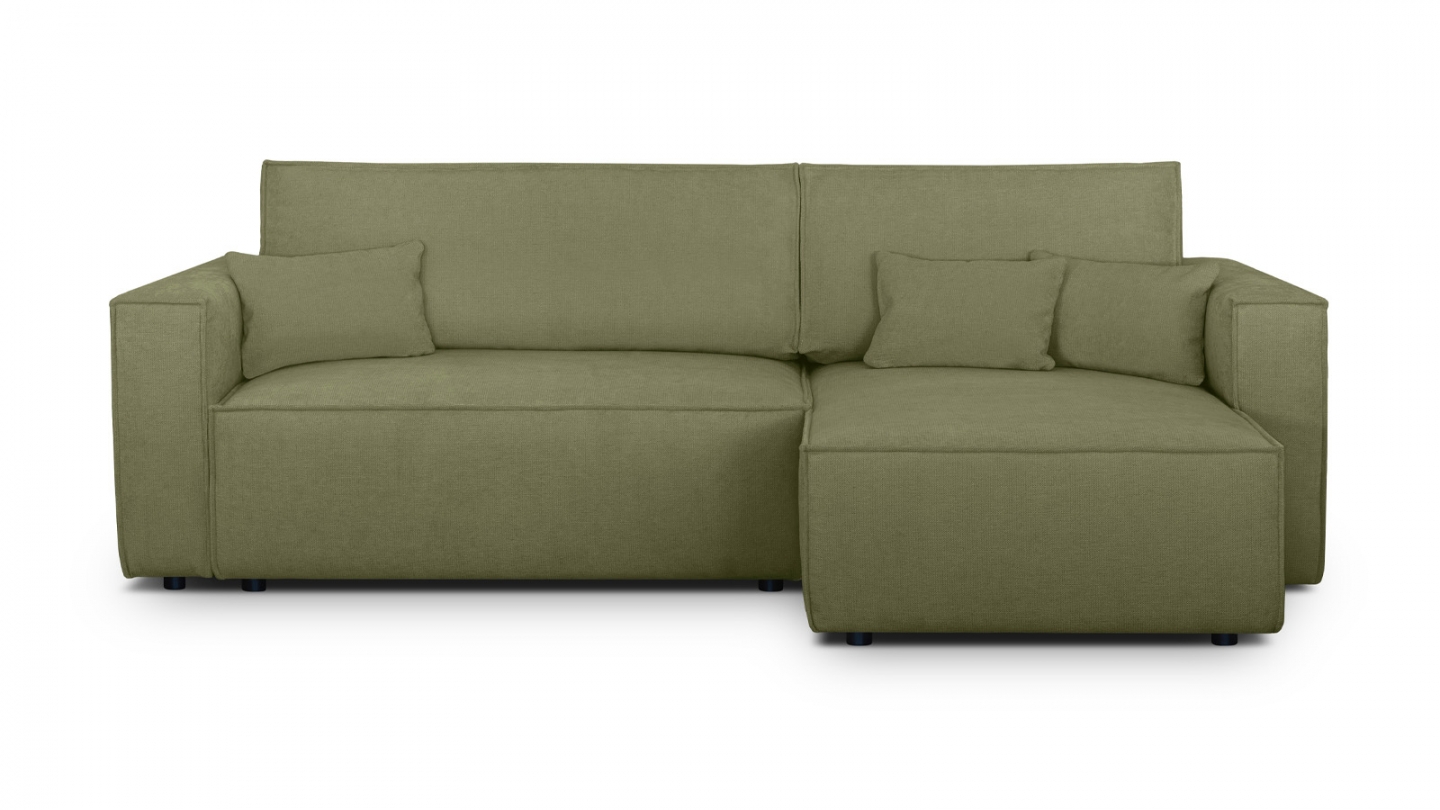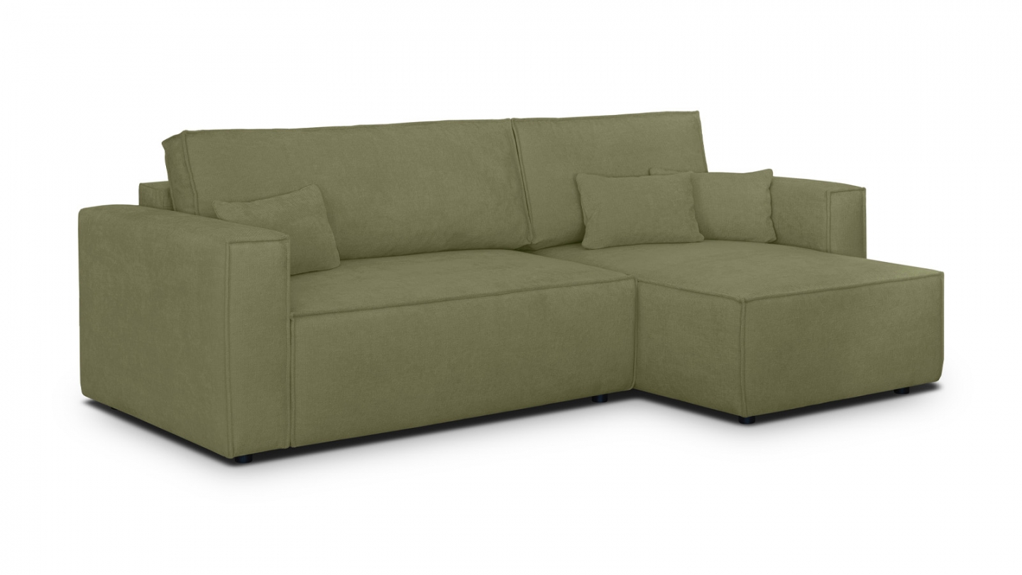 En stockCanapé d'angle convertible 4 places en velours côtelé kaki Confort : équilibré : accueil moelleux, soutien ferme Couleur : kaki Revêtement : velours côtelé - certifié Oekotex - Petfriendly Angle réversible : adaptez la configuration de votre canapé avec un angle à droite ou à gauche en fonction de vos envies ! Coffre de rangement sous l'assise, pratique...