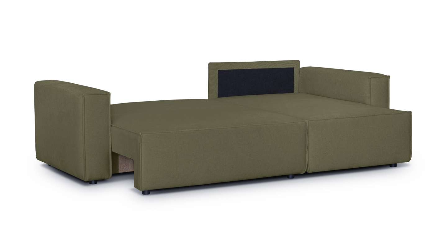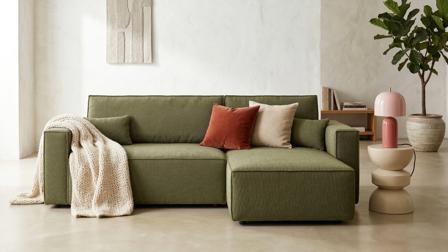 • Canapé d'angle convertible 4 places en tissu chenille vert kaki