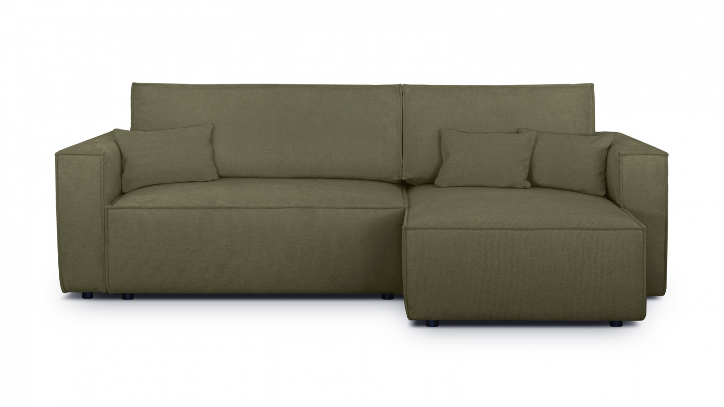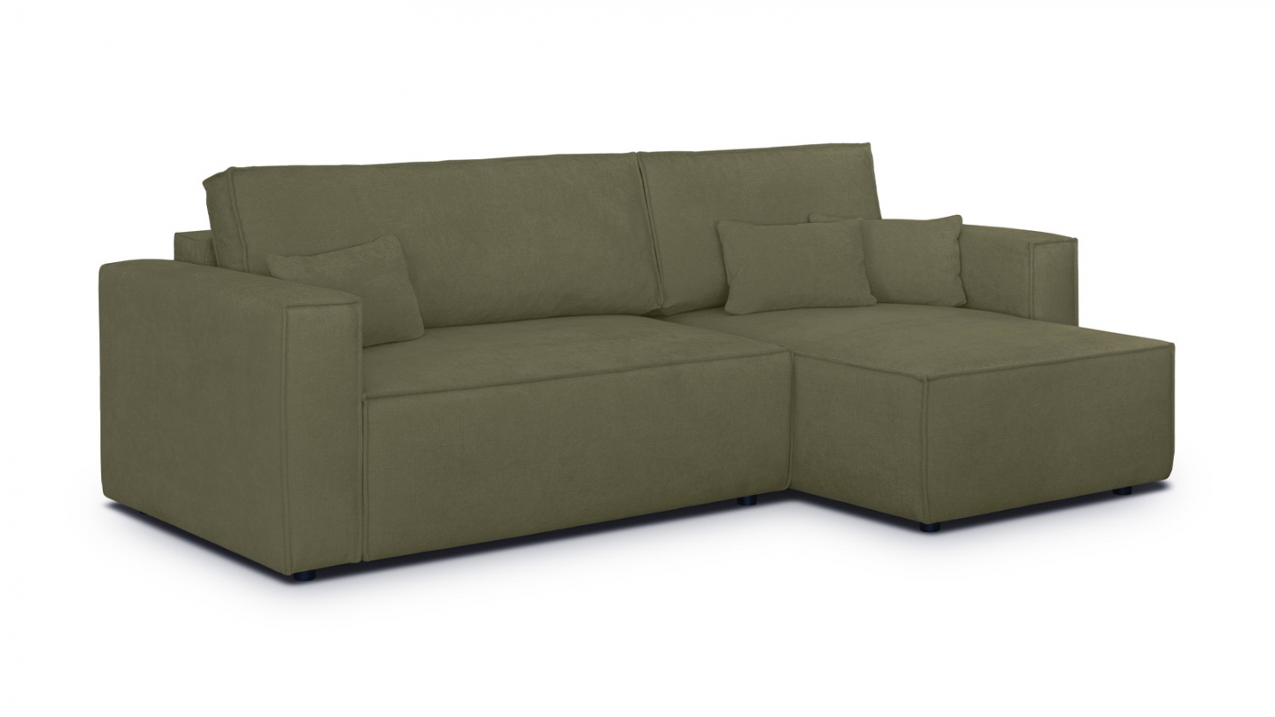 En stockCanapé d'angle convertible 4 places en velours côtelé kaki Confort : équilibré : accueil moelleux, soutien ferme Couleur : kaki Revêtement : velours côtelé - certifié Oekotex - Petfriendly Angle réversible : adaptez la configuration de votre canapé avec un angle à droite ou à gauche en fonction de vos envies ! Coffre de rangement sous l'assise, pratique...