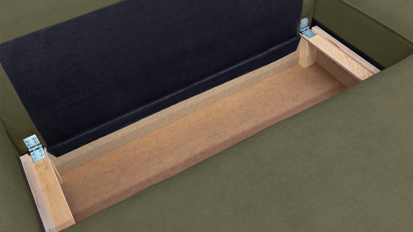 • Coffre de rangement sous l'assise, pratique pour ranger plaid, couettes etc