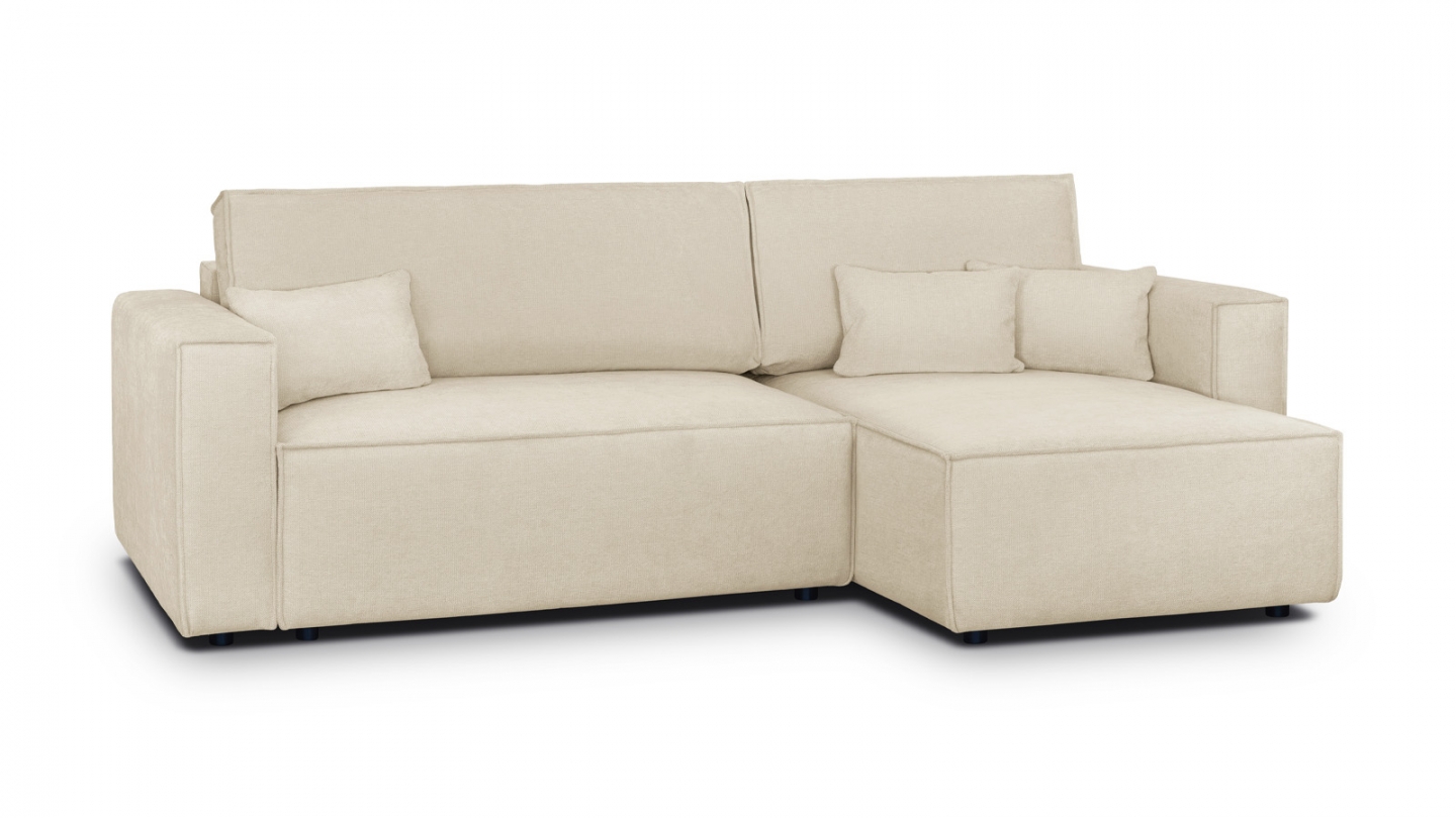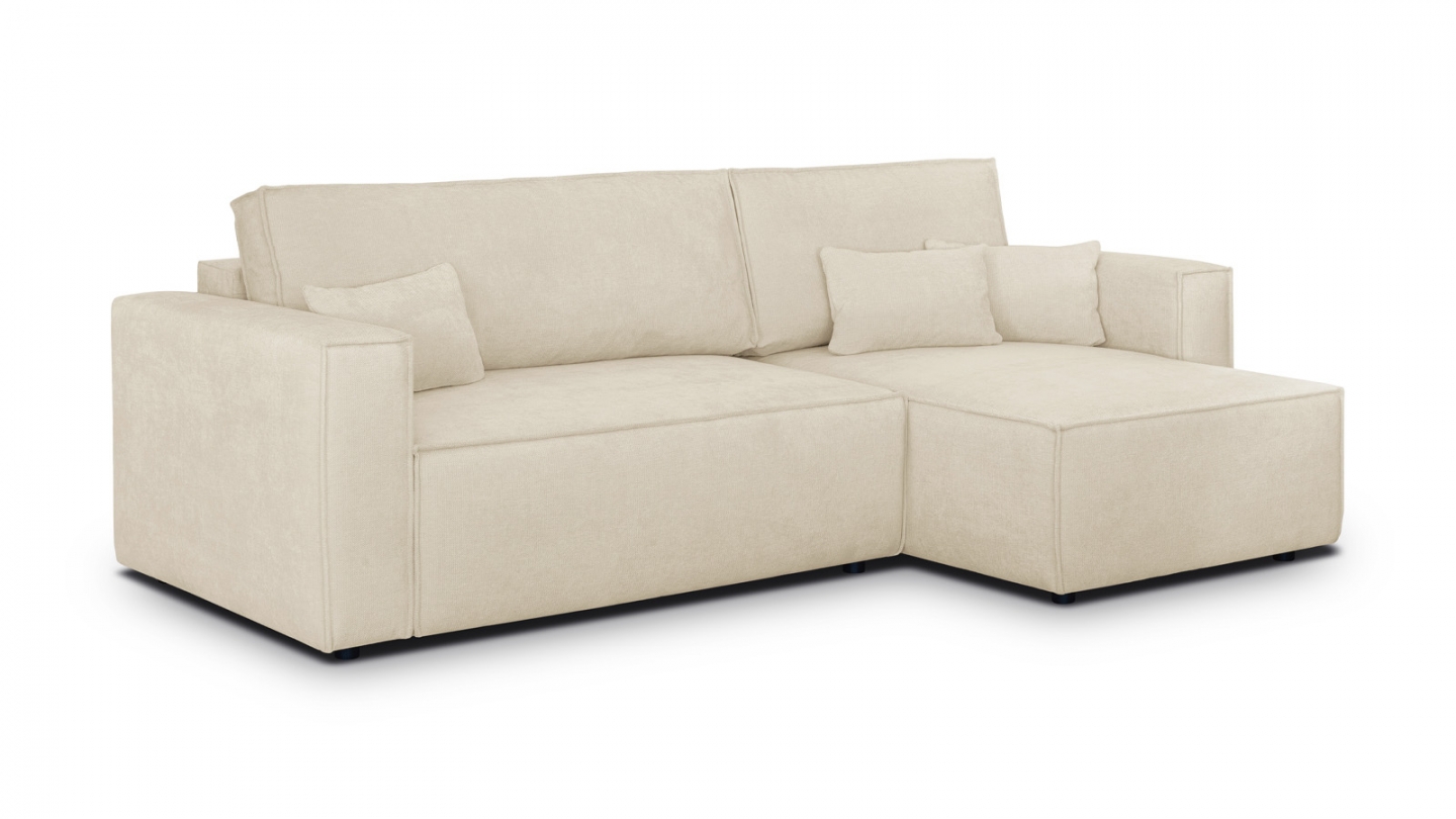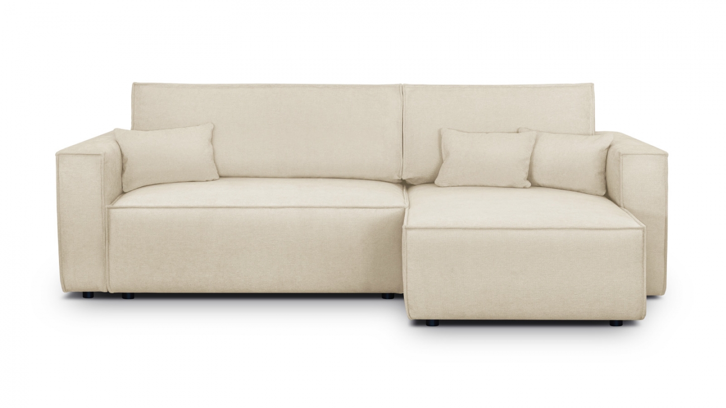 Canapé d'angle convertible 4 places en velours côtelé beige Confort : équilibré : accueil moelleux, soutien ferme Couleur : beige Revêtement : velours côtelé - certifié Oekotex - Petfriendly Angle réversible : adaptez la configuration de votre canapé avec un angle à droite ou à gauche en fonction de vos envies ! Coffre de rangement sous l'assise,...