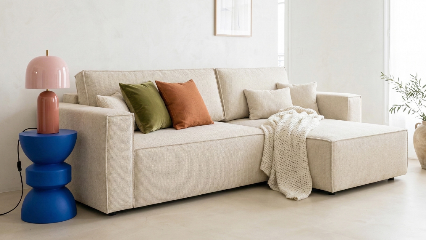 • Angle réversible : adaptez la configuration de votre canapé avec un angle à droite ou à gauche en fonction de vos envies !