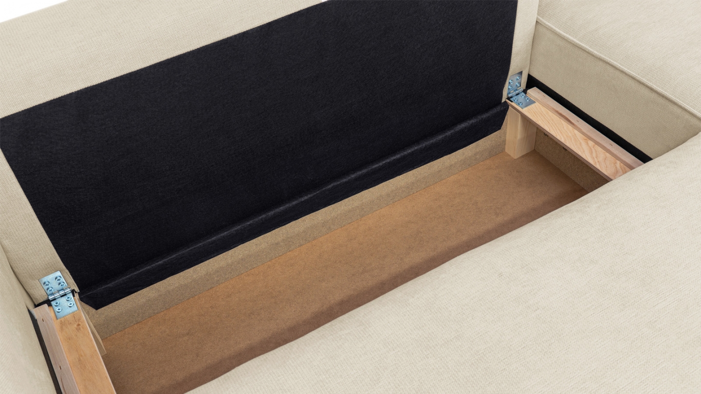 • Coffre de rangement sous l'assise, pratique pour ranger plaid, couettes etc