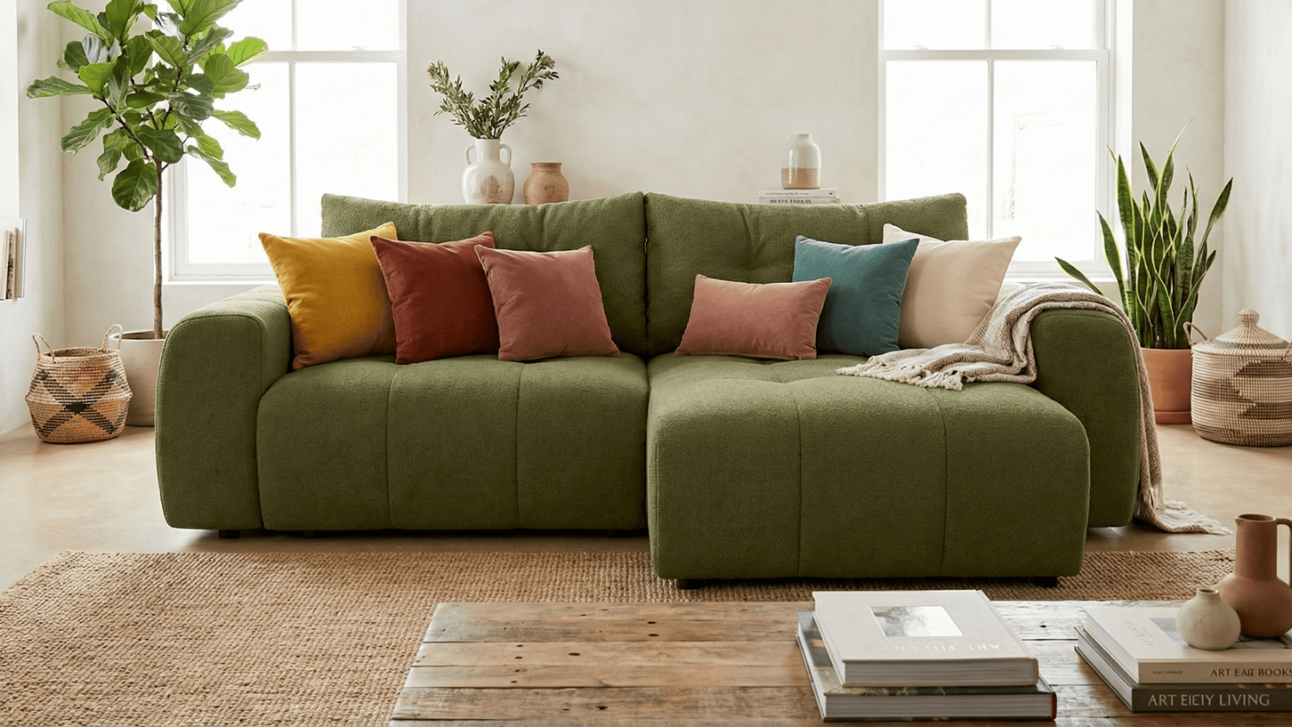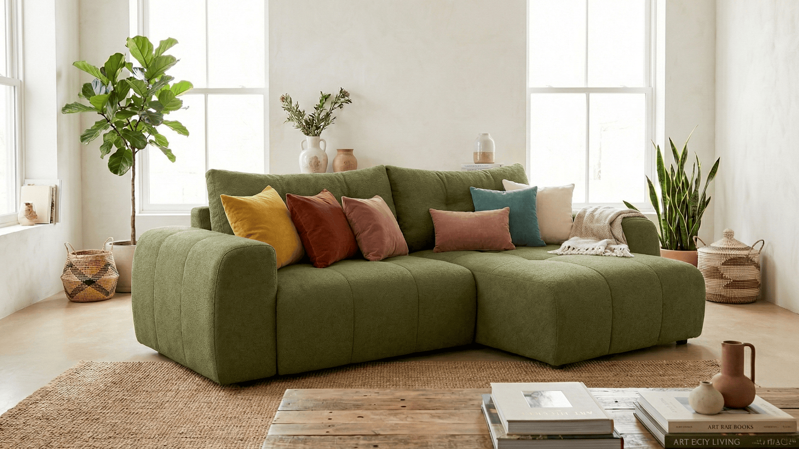 En stockCanapé d'angle convertible 4 places - Alba• Type d'angle : réversible. Adaptez la configuration de votre canapé avec un angle à droite ou à gauche en fonction de vos envies.• Couleur : Vert kaki• Revêtement : Velours côtelé 380 g/m² certifié Oeko-Tex®• Structure : Bois• Garnissage : Mousse de polyuréthane expansé 25 Kg/m3• Confort : équilibré (accueil...