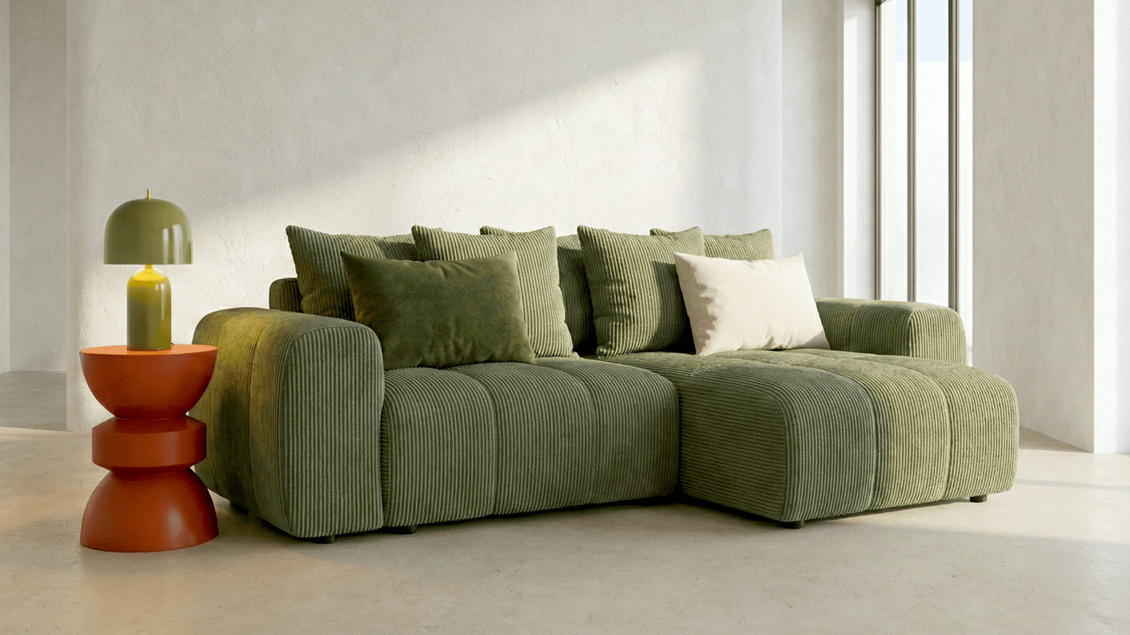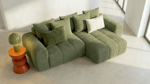 La collection Rivoli se distingue par son velours côtelé 380 g/m² certifié Oeko-Tex®, reconnu pour sa douceur et sa résistance. Pensée pour les intérieurs contemporains, elle associe design moderne, lignes équilibrées et fonctionnalités pratiques comme les angles réversibles et les coffres intégrés.