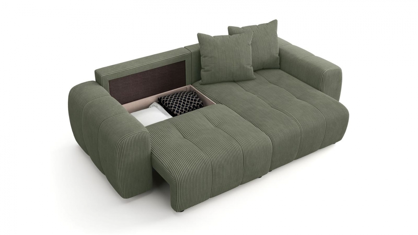 • Coffre de rangement intégré sous l’assise, pratique pour stocker plaids, coussins ou linge de lit sans encombrer le salon.