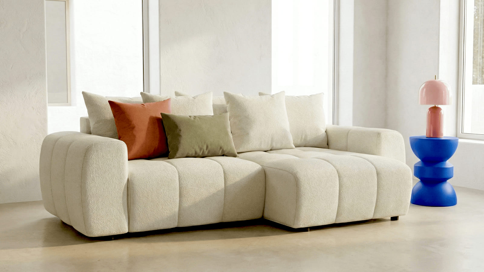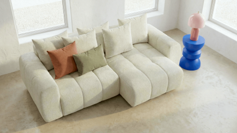 La collection Rivoli se distingue par son tissu chenille 230 g/m² certifié Oeko-Tex®, doux et structuré, garantissant un contact sûr au quotidien. Pensée pour les intérieurs contemporains, elle allie design élégant, lignes équilibrées et fonctionnalités pratiques comme l’angle réversible et le coffre intégré.