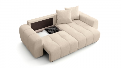 • Coffre de rangement intégré sous l’assise, pratique pour stocker plaids, coussins ou linge de lit sans encombrer le salon.