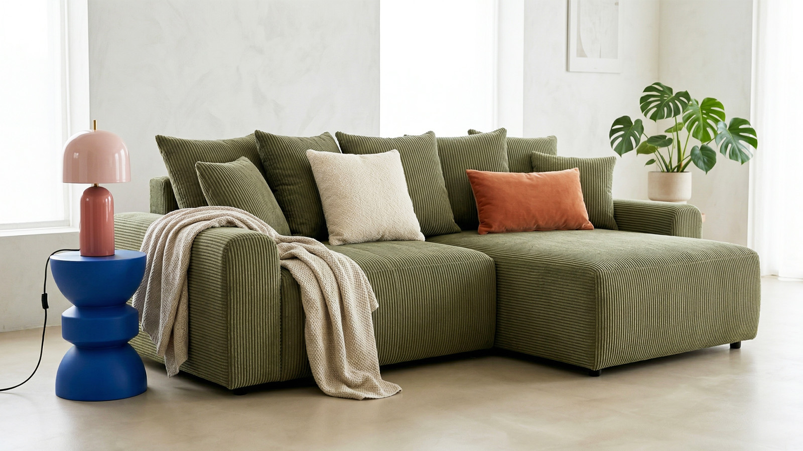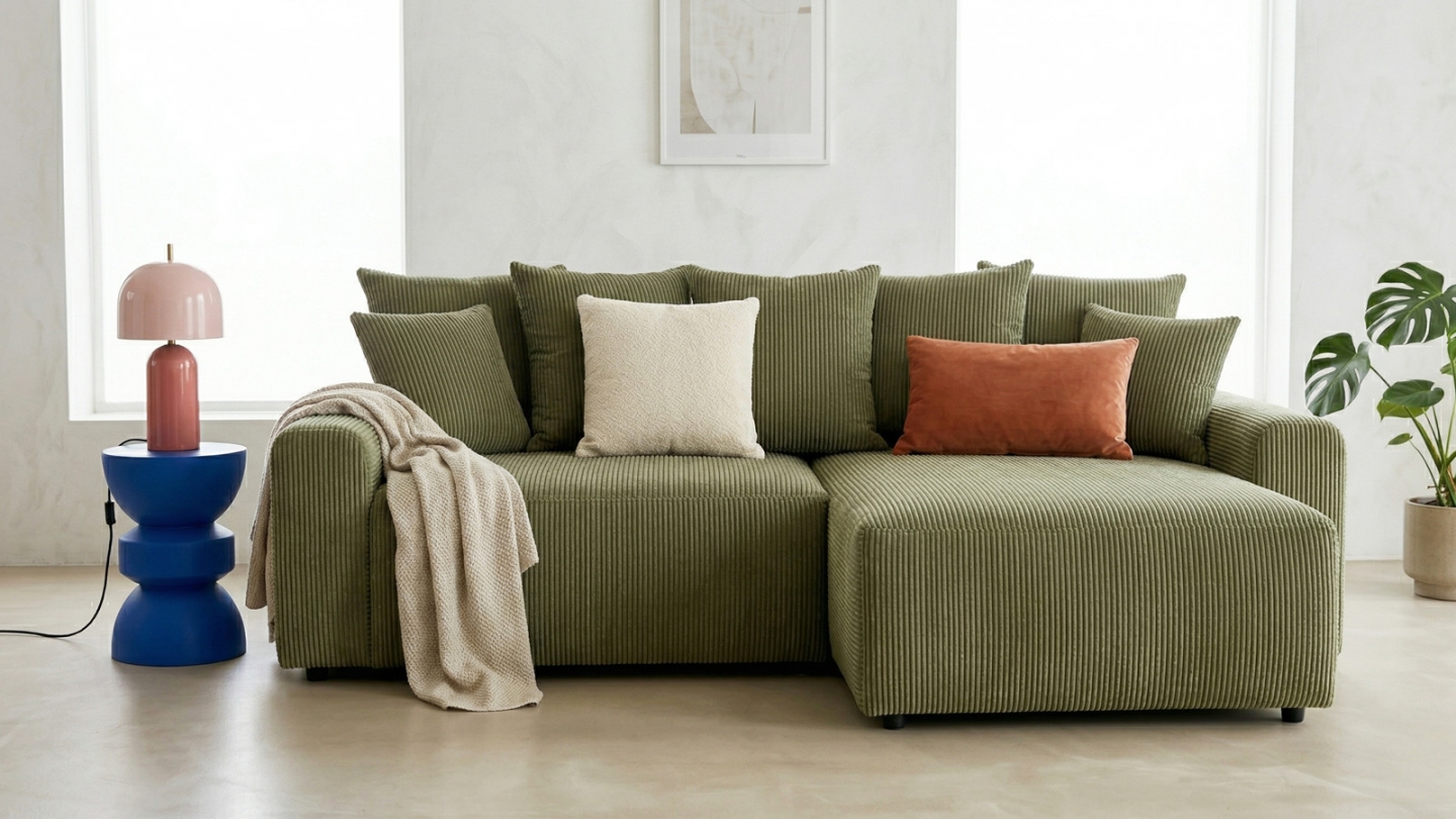 • Revêtement : Velours côtelé 380 g/m² certifié Oeko-Tex® - Pet Friendly, testé pour limiter la présence de substances nocives et offrir un contact plus sûr au quotidien