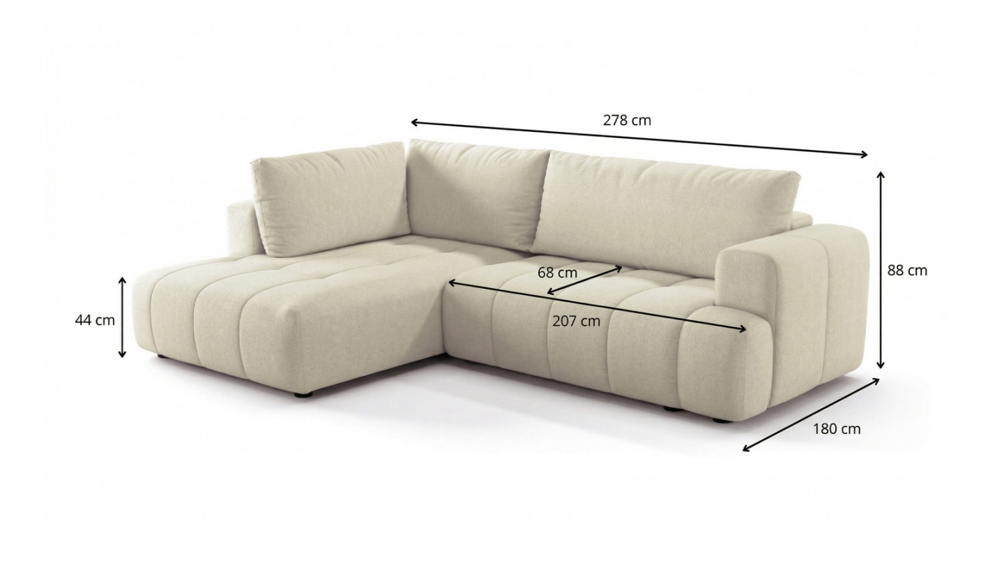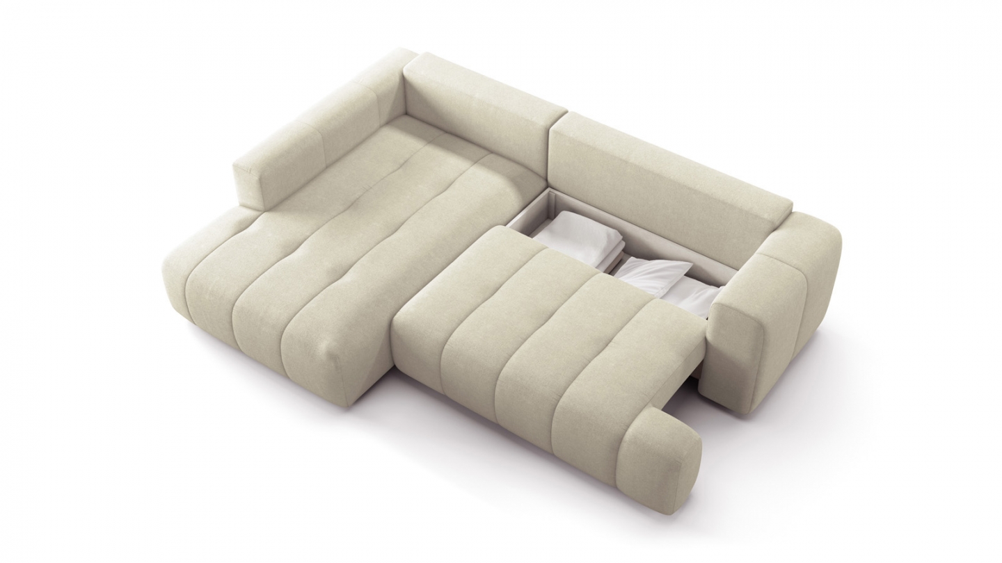 Le canapé d'angle convertible Brera allie confort du quotidien et praticité. Son système d'ouverture rapide permet de déployer le couchage en quelques secondes, sans effort.