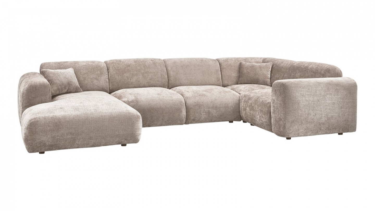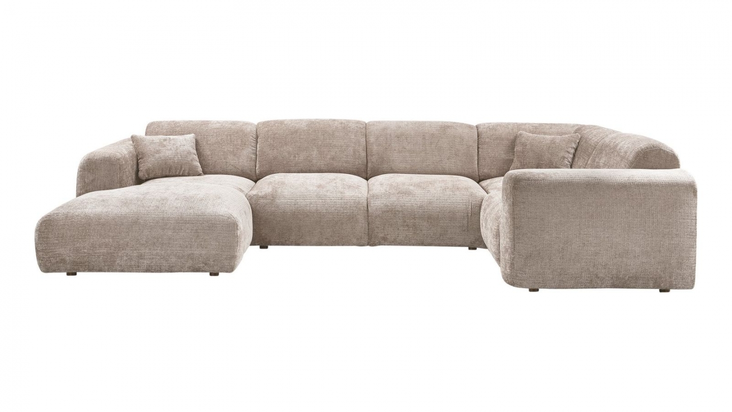 Canapé d'angle XXL à droite en tissu chenille tissée naturel - Cloud