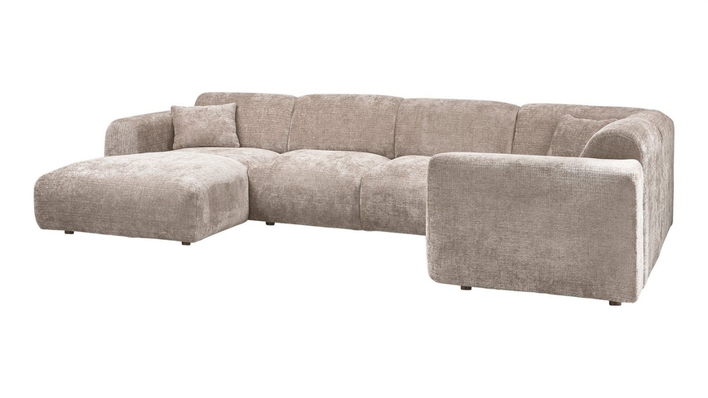 WOOOD Canapé d'angle XXL à droite en tissu chenille tissée naturel - Cloud