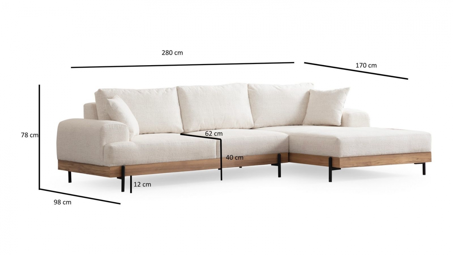 • Type d'angle : à droite (lorsqu'on se tient face au canapé)