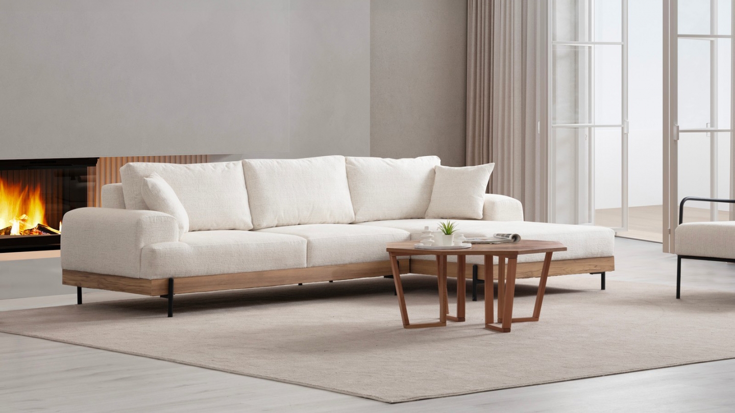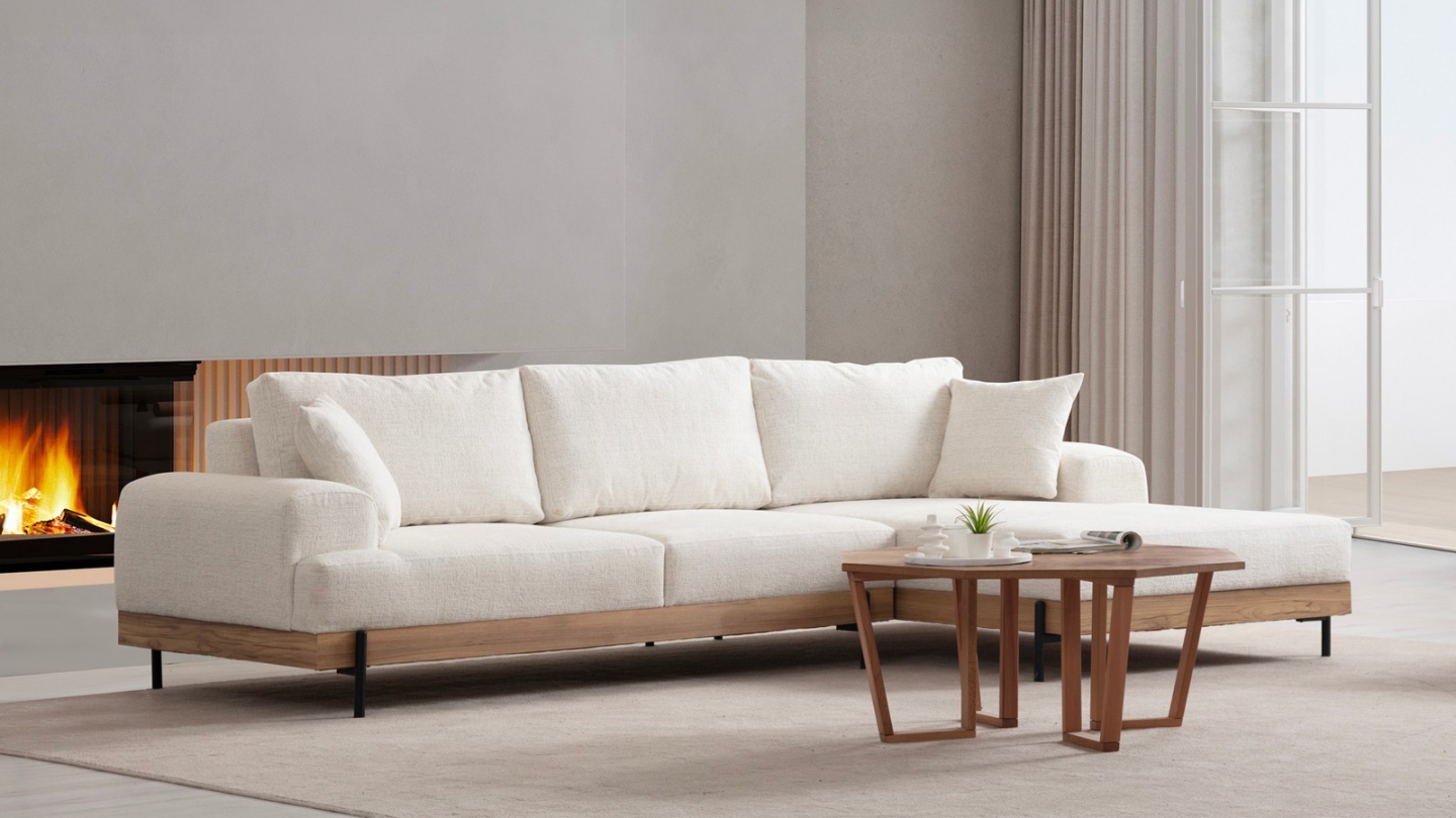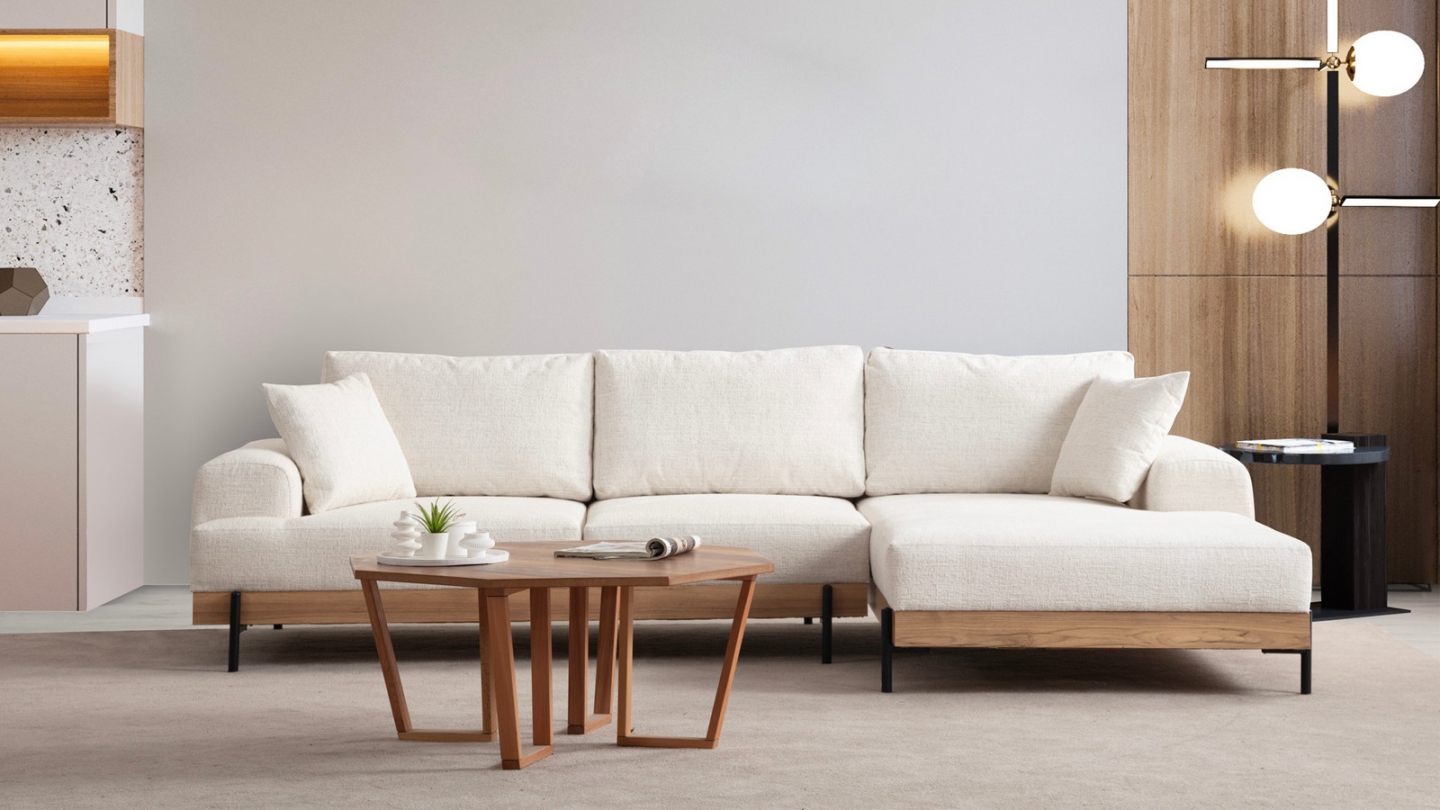 • Sa base en bois soulignée par des pieds métal crée un contraste élégant qui structure visuellement le canapé et apporte un vrai cachet design à votre salon.
