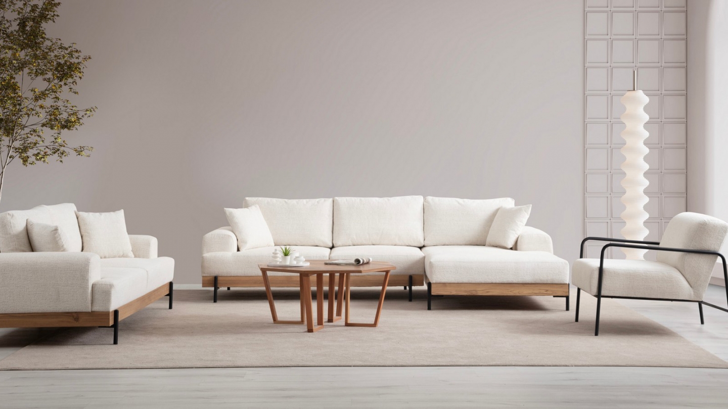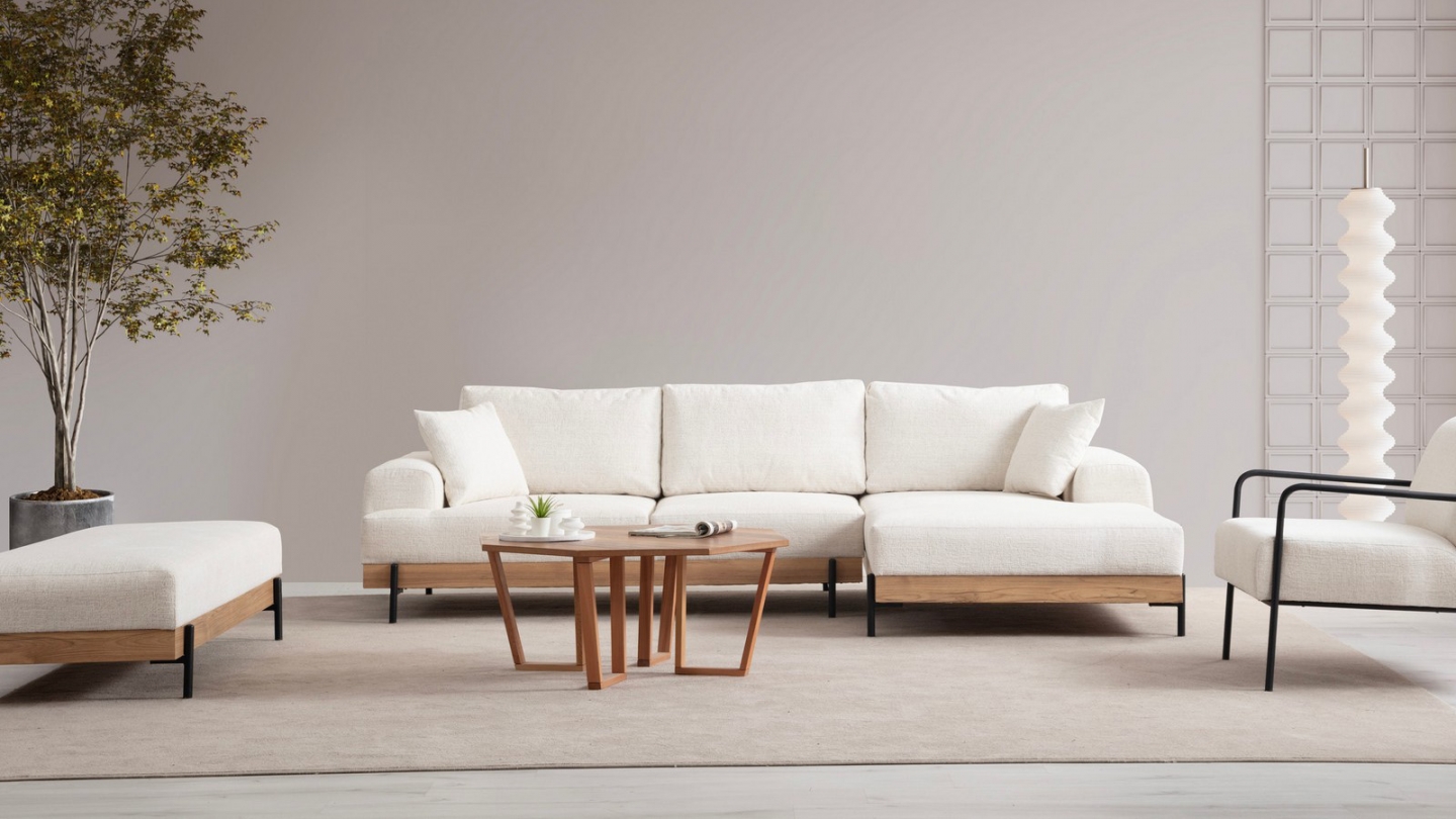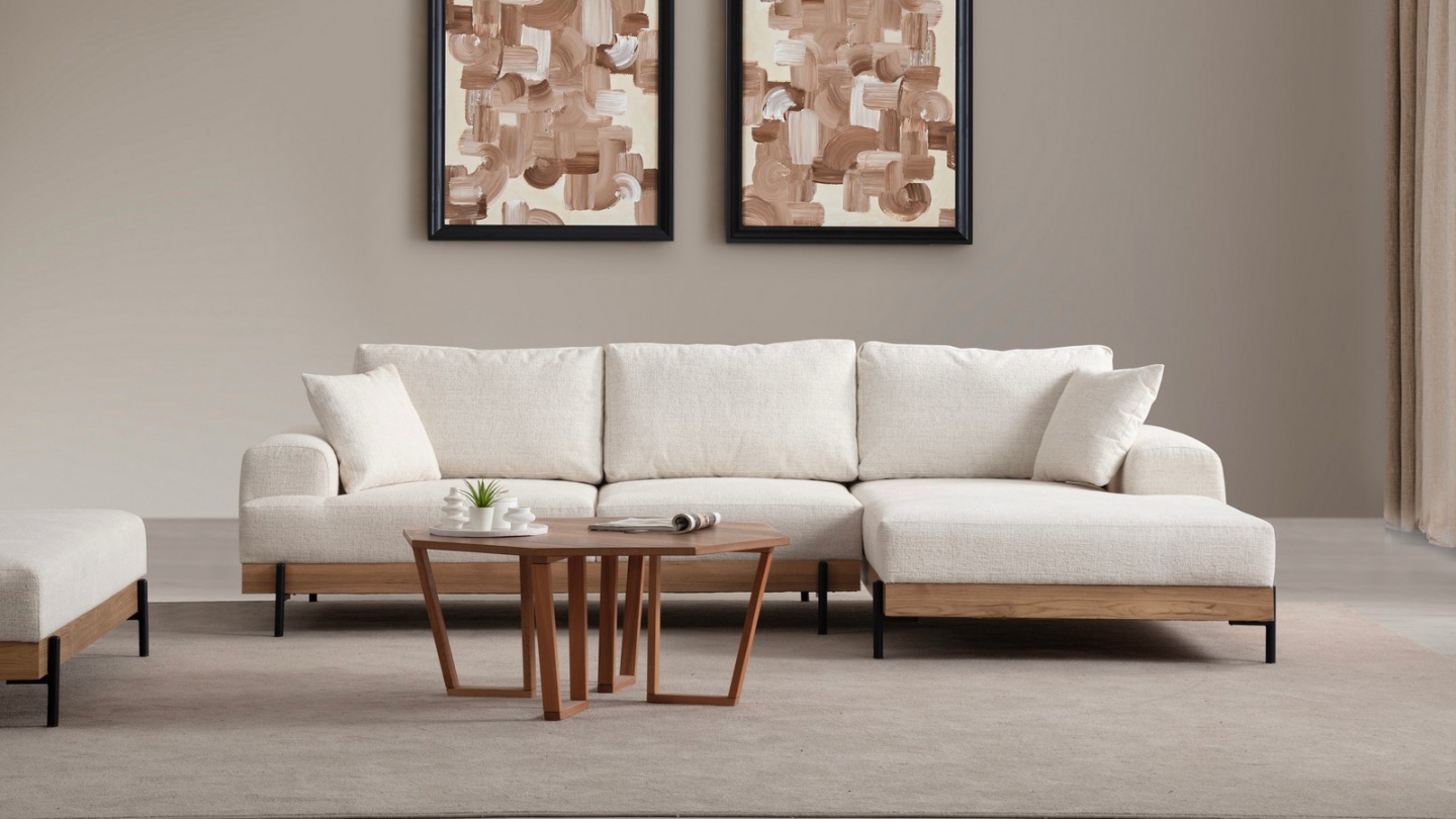 • Sa base en bois soulignée par des pieds métal crée un contraste élégant qui structure visuellement le canapé et apporte un vrai cachet design à votre salon.
