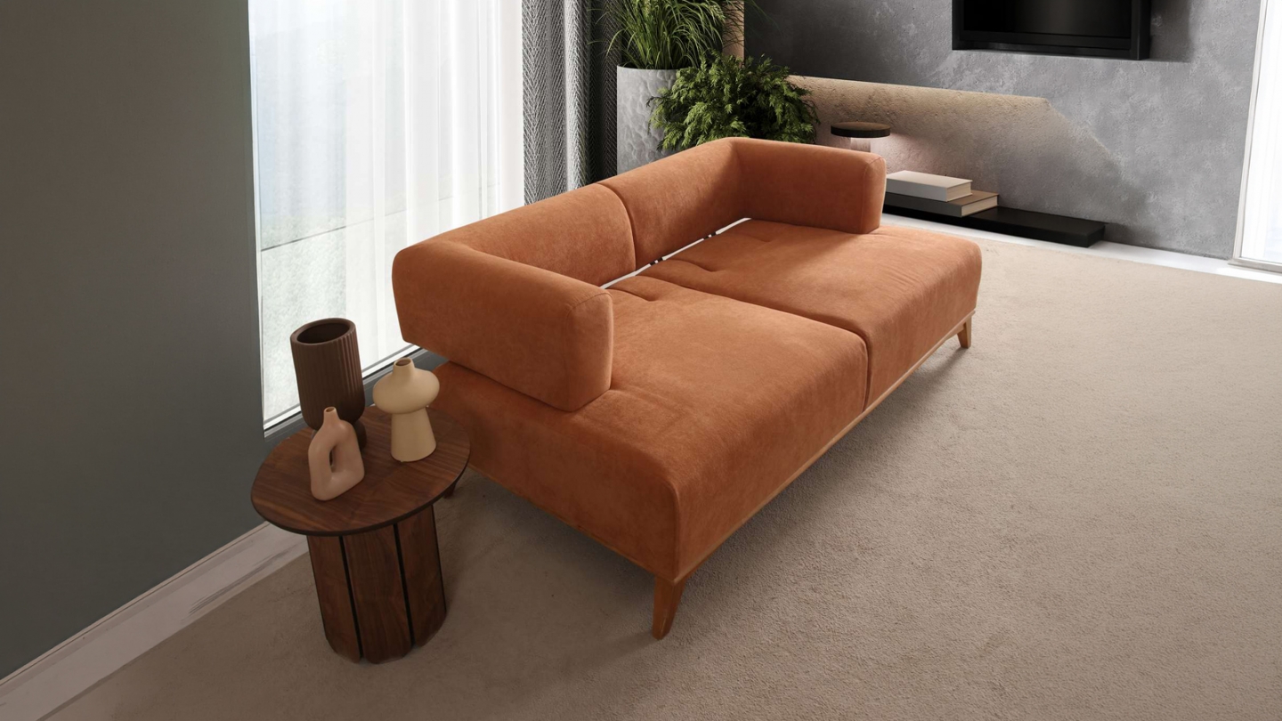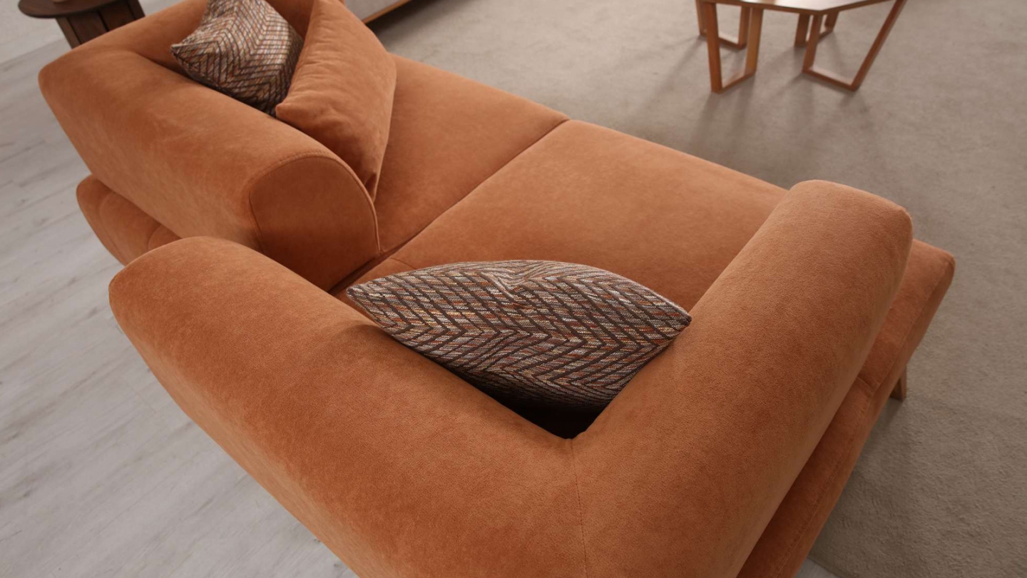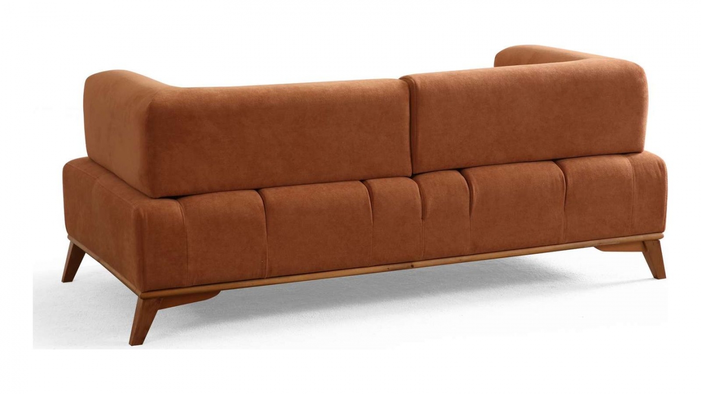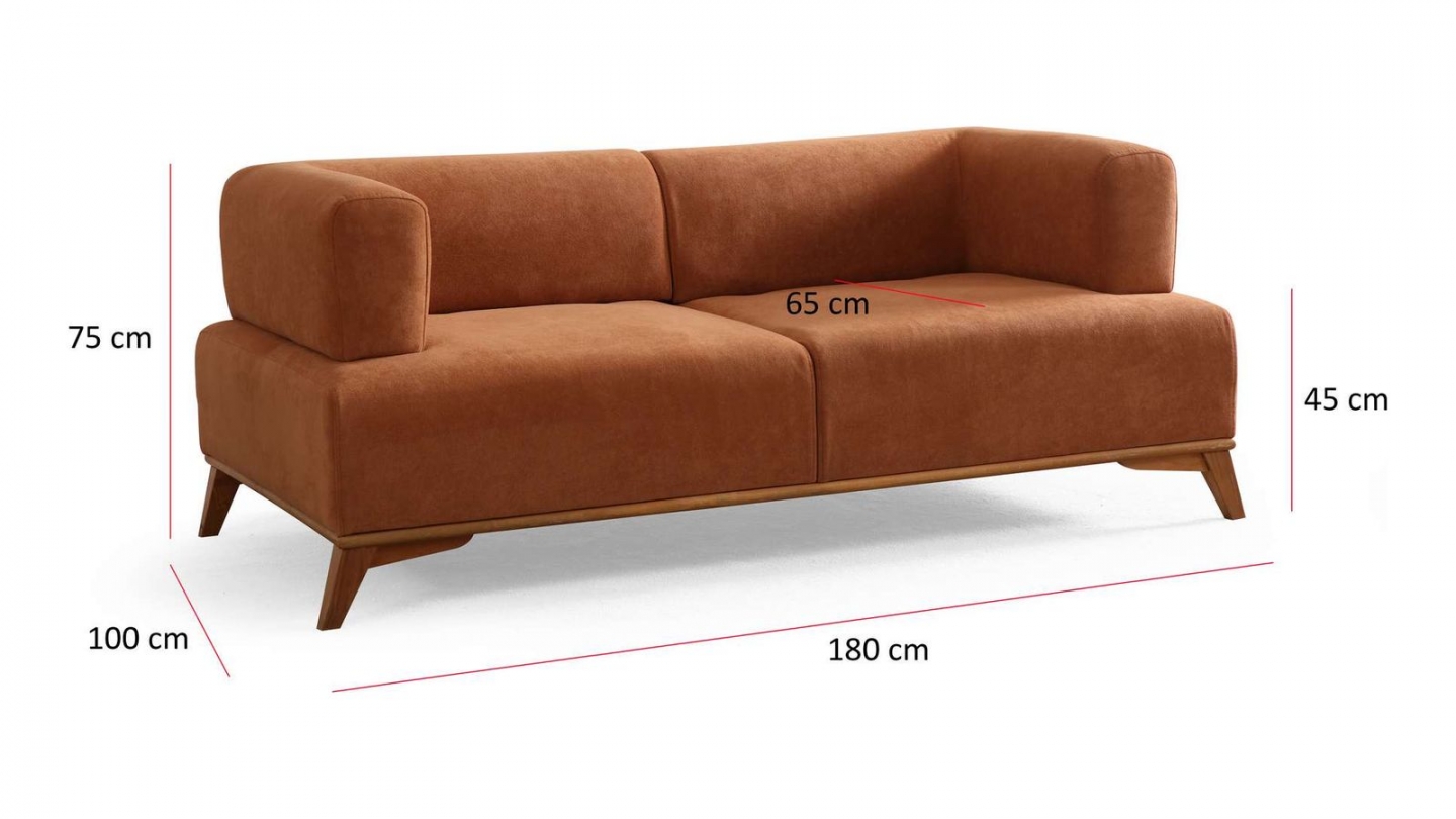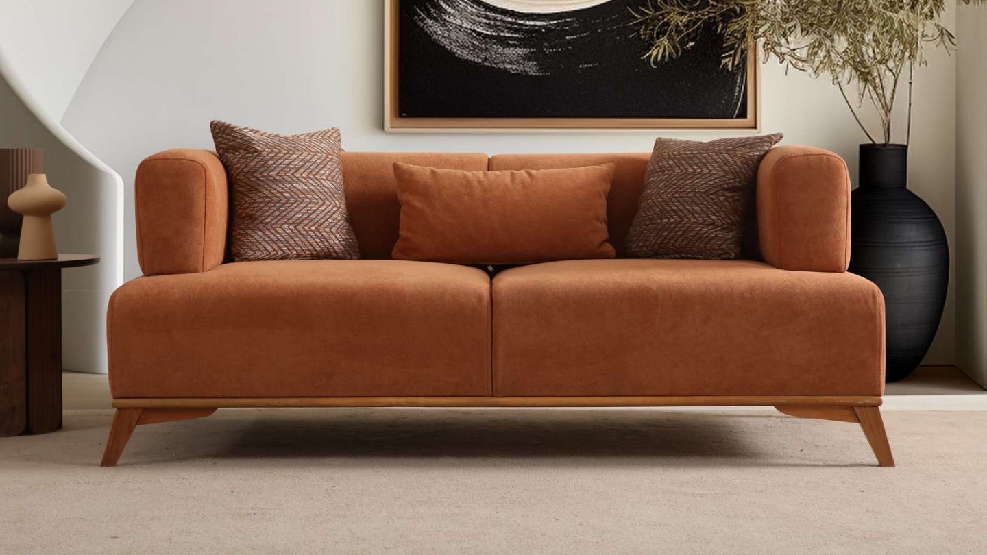 Canapé droit 2 places en tissu rouille, piètement marron - Tano