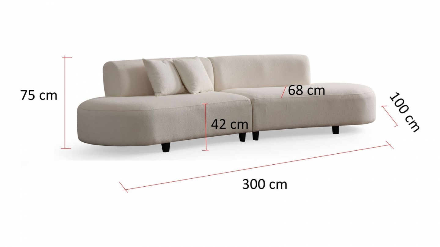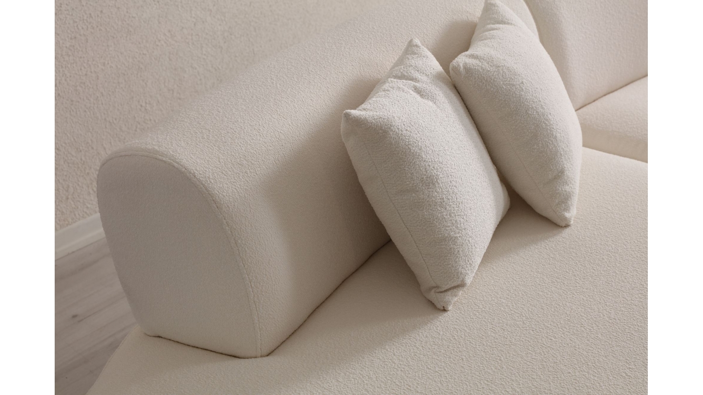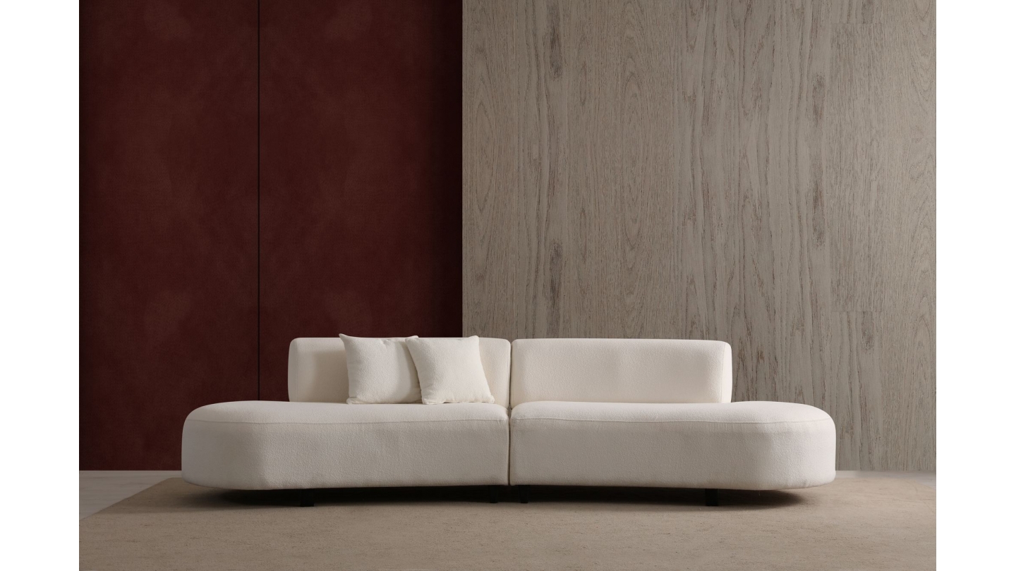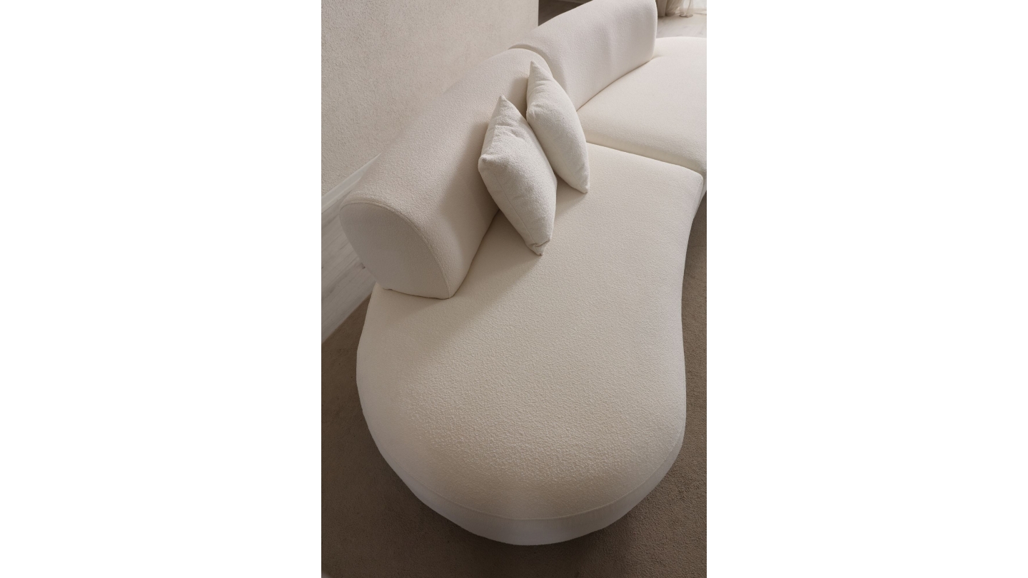 Canapé organique 6 places - Rafaela• Un canapé aux courbes généreuses qui offre un confort lounge et une présence design incomparable dans le salon.• Couleur : Beige• Revêtement : Tissu bouclé - Nettoyage à sec• Structure : Bois massif (Hêtre)• Garnissage : Mousse 28 kg/m3 - Plumes 24 kg/m3• Confort : équilibré (accueil moelleux, soutien ferme)• 2...