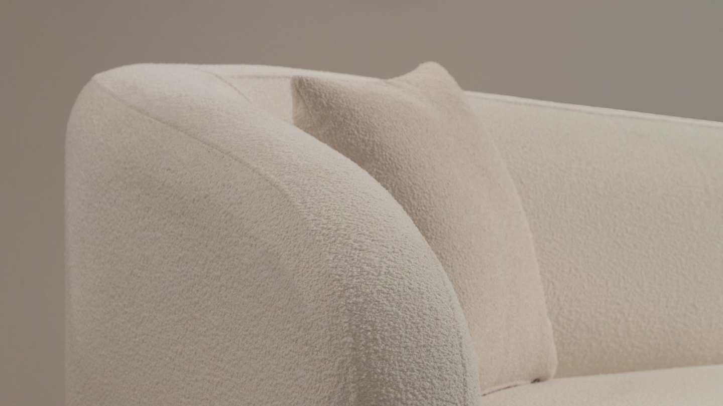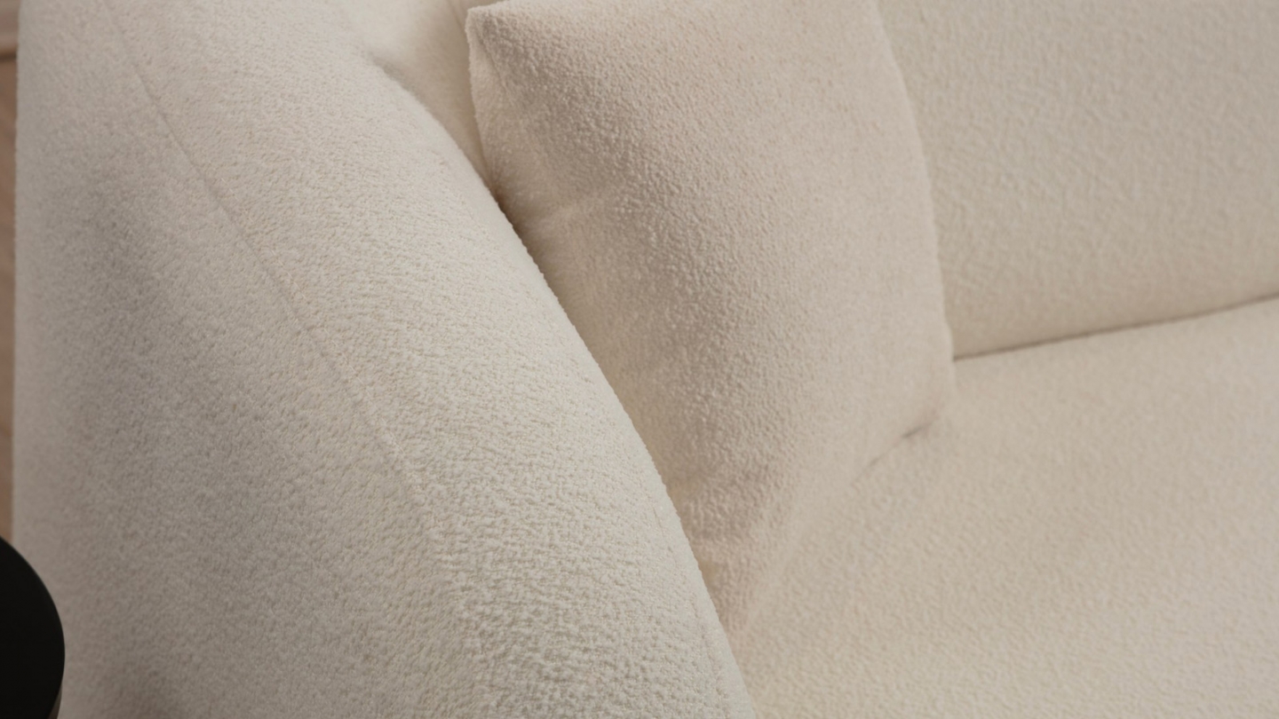 • Grâce à sa silhouette tout en courbes, ce canapé crée naturellement un “effet cocon” qui adoucit immédiatement l’ambiance du salon, même dans les espaces les plus épurés.