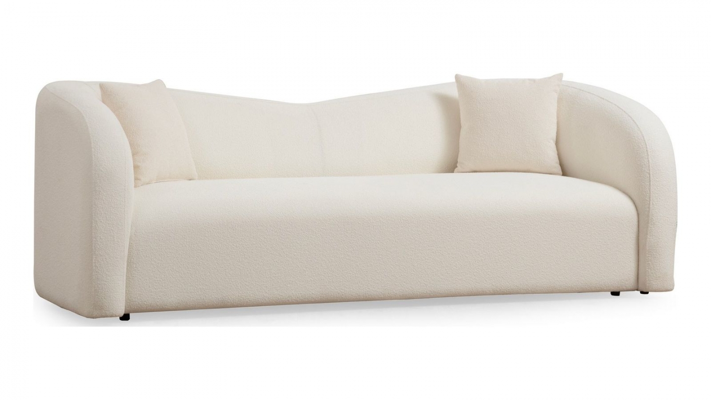 Canapé 2 places - Miro• Grâce à sa silhouette tout en courbes, ce canapé crée naturellement un “effet cocon” qui adoucit immédiatement l’ambiance du salon, même dans les espaces les plus épurés.• Couleur : Beige• Revêtement : Tissu bouclé - Nettoyage à sec• Structure : Bois massif (Hêtre)• Garnissage : Mousse 28 kg/m3 - Plumes 24 kg/m3• Confort :...