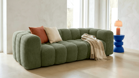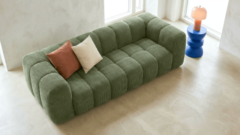 Le canapé 3 places Nuvola séduit par ses lignes contemporaines et son équilibre parfait entre esthétique et confort. Son revêtement en velours côtelé 380 g/m² certifié Oeko-Tex® offre un toucher doux et texturé, tout en garantissant un usage plus sûr au quotidien.