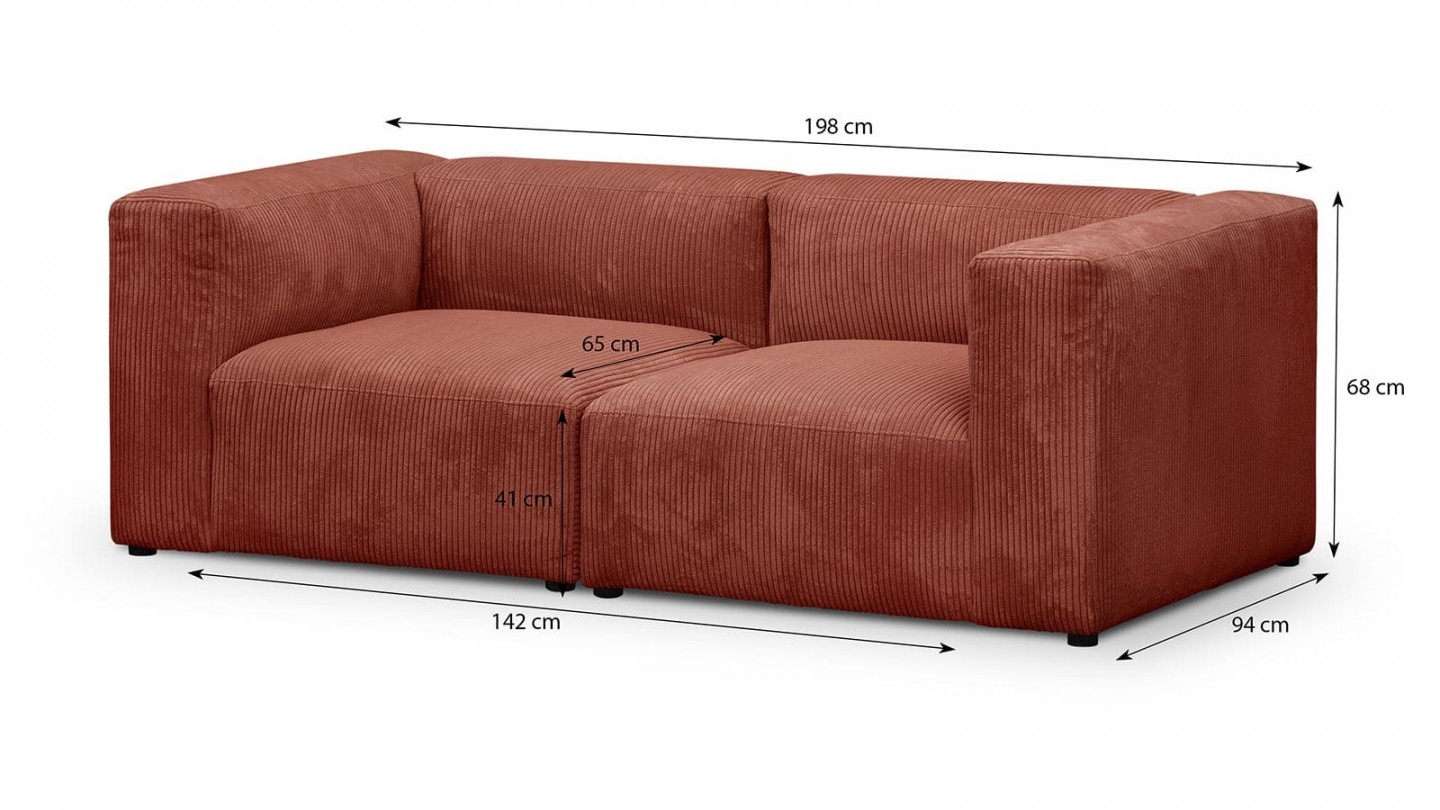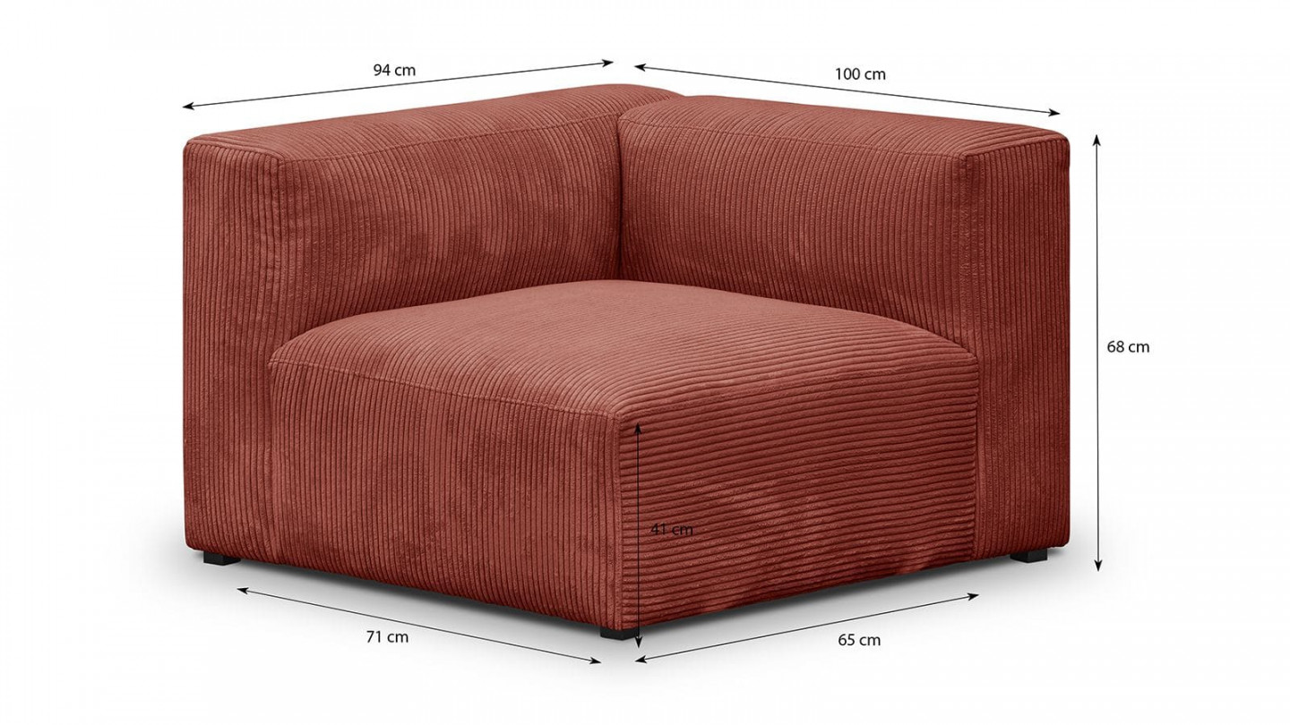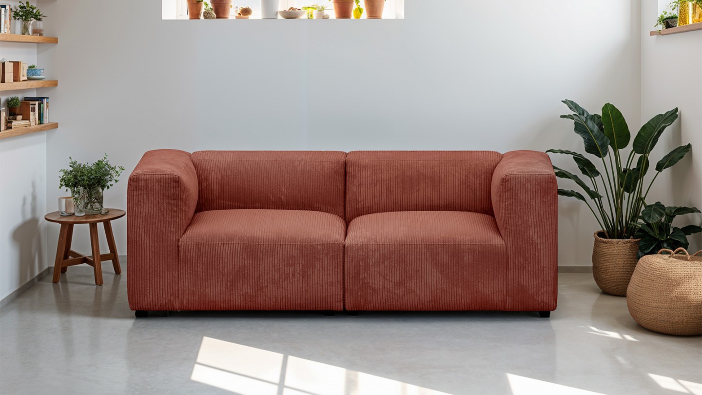 Fabriqué dans un épais tissu de velours côtelé rouille le canapé Modulo dégage une élégance raffinée et apportera instantanément une touche de chaleur à votre pièce.