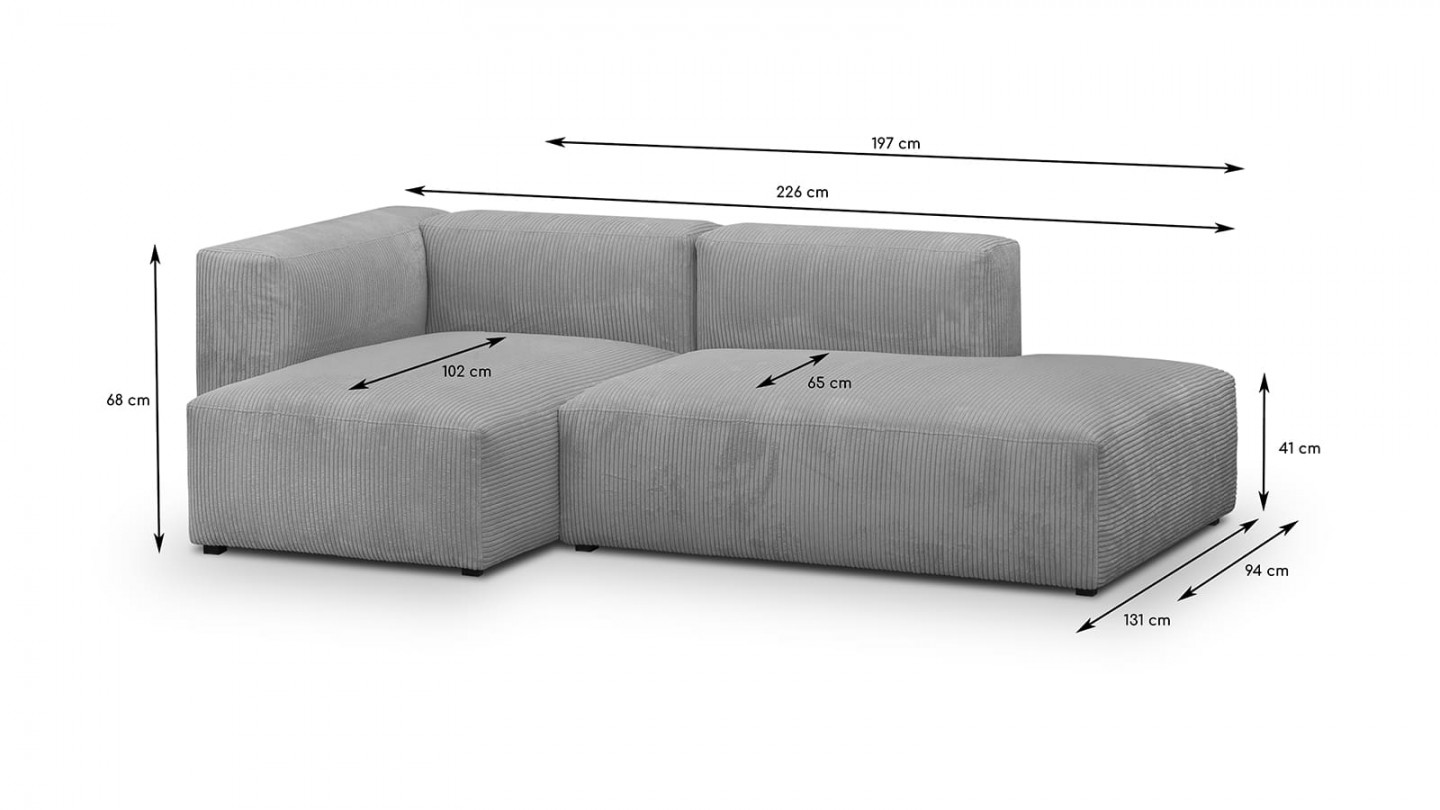 Ultra confortable, ce canapé Modulo vous propose une largeur d'assise de 197 cm et d'une profondeur d'assise de 65 à 102 cm sur la méridienne.
