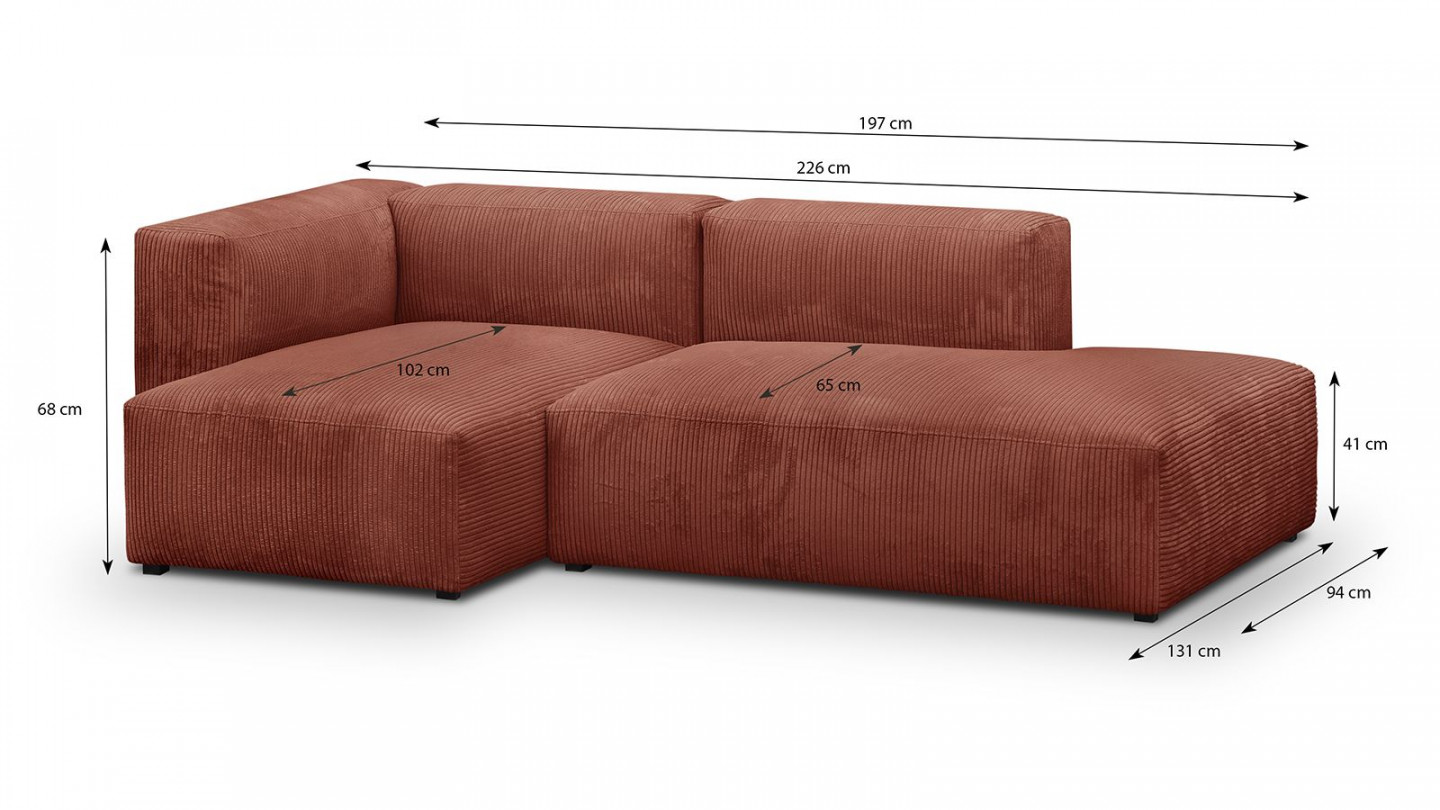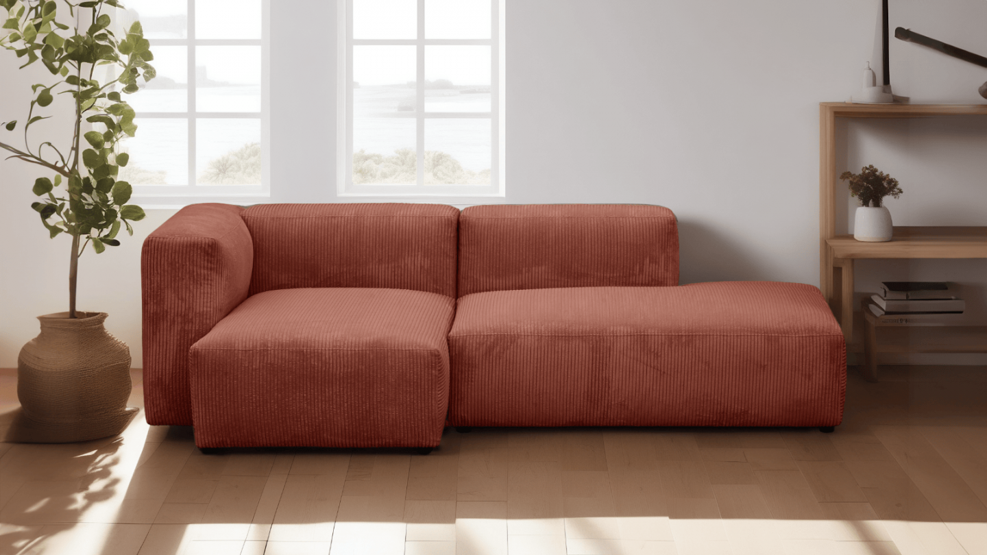 Canapé d'angle modulable 3/4 places en velours côtelé rouille