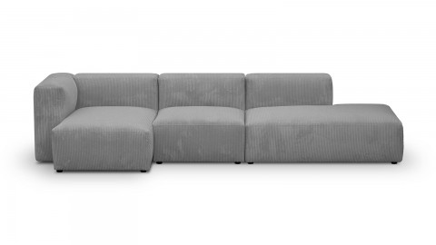 Modules composants le canapé : 1 méridienne d'angle à gauche + 1 chauffeuse sans accoudoirs + 1 module d'angle ouvert à droite