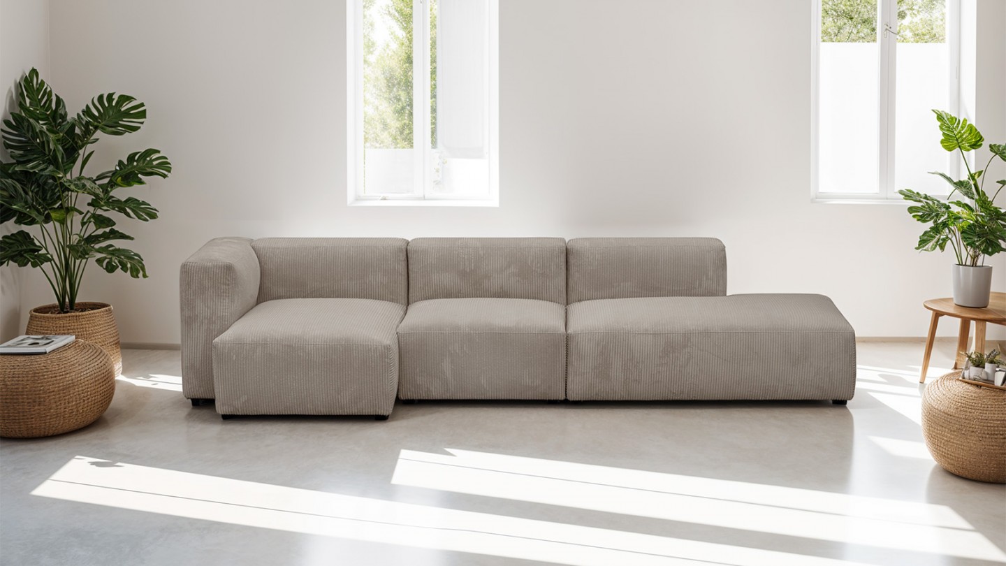 Chauffeuse d'angle à gauche modulable - Modulo• Module d'assise pour canapé évolutif Modulo. Peut s'utiliser seul ou combiné. Compatible avec tous les modules de la gamme MODULO• Système d'accroche invisible en métal pour faciliter l'assemblage des modules entre eux• Couleur : beige• Revêtement : Velours côtelé certifié Oekotex• Structure : Pin...