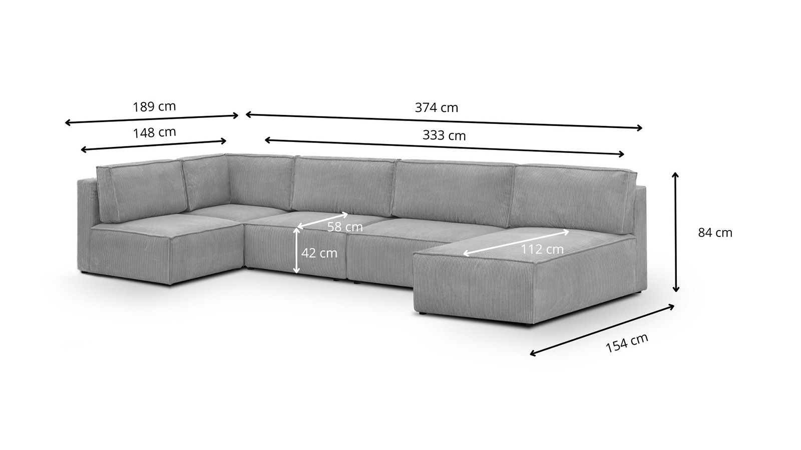 Largeur de l'assise : 515 cm - Hauteur de l'assise : 42 cm - Profondeur de l'assise : 58 cm