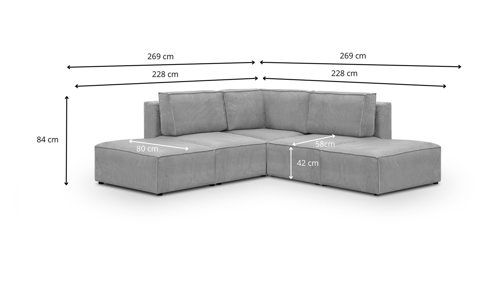 Dimensions totales : 269 x 269 x 84 cm