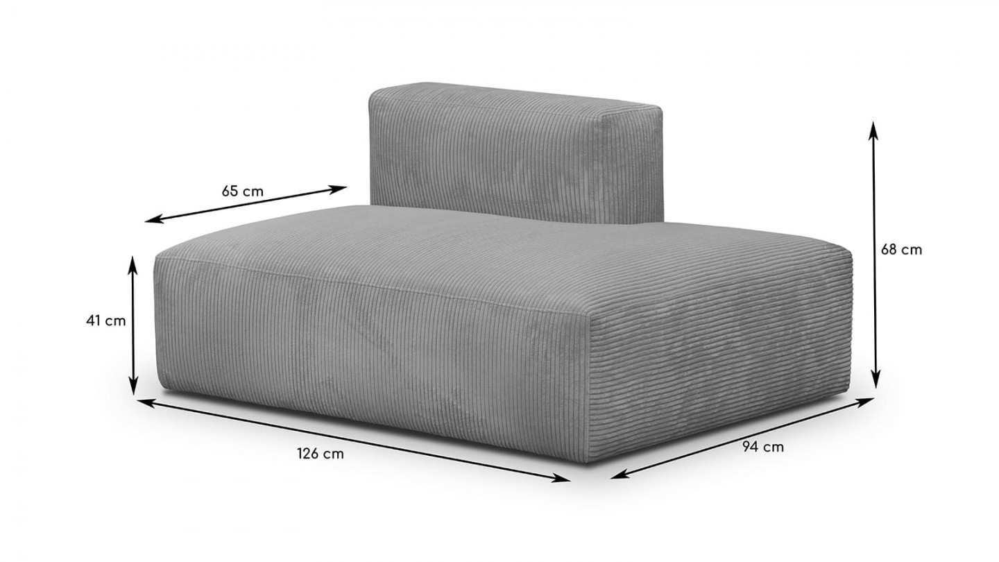 Chauffeuse d'angle à gauche modulable - Modulo• Module d'assise pour canapé évolutif Modulo. Peut s'utiliser seul ou combiné. Compatible avec tous les modules de la gamme MODULO• Système d'accroche invisible en métal pour faciliter l'assemblage des modules entre eux• Couleur : beige• Revêtement : Velours côtelé certifié Oekotex• Structure : Pin...
