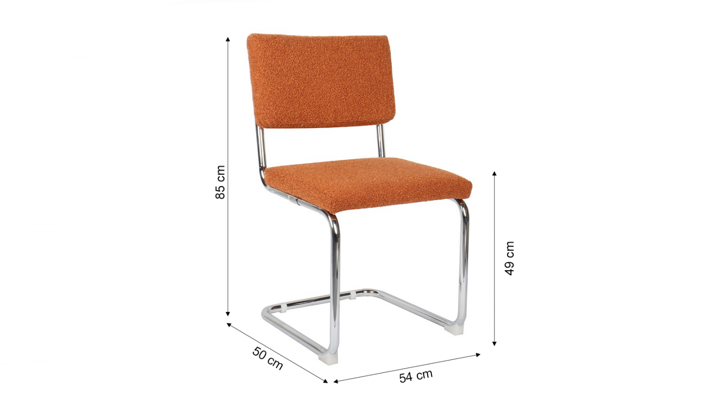 Le revêtement en velours tissu bouclé rouille apporte une touche douce et chaleureuse à votre intérieur, tandis que la structure en métal chromé vous assure une stabilité et résistance au fil des années.