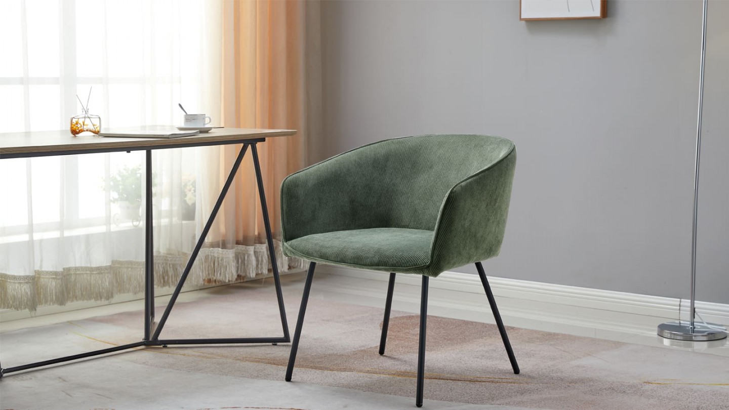 Lot de 2 chaises de salle à manger - Cloé• Matière de la structure : Métal• Revêtement : Velours côtelé 340 g/m² certifié Oeko-Tex• Couleur : Vert kaki• Piètement : métal noir• Garnissage de l'assise : Mousse 26 kg/m3• Garnissage du dossier : Mousse 22 kg/m3• Dimensions totales : 50 x 60 x 79 cm• Largeur de l'assise : 49 cm• Profondeur de l'assise : 48...