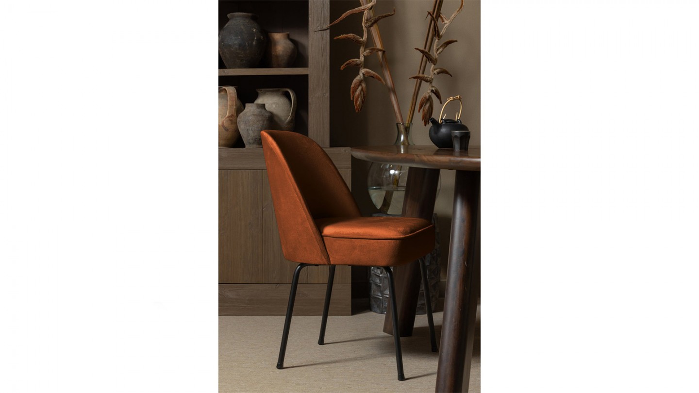 En stock• Lot de 2 chaises en cuir recyclé cognac Vogue• Matière : Cuir recyclé• Couleur : Cognac• Piètement en acier noir• Composition : 70% cuir / 30% polyester• Dimensions : 82,5 x 50 x 57 cm• Garantie 2 ans