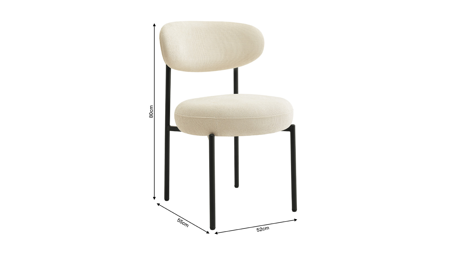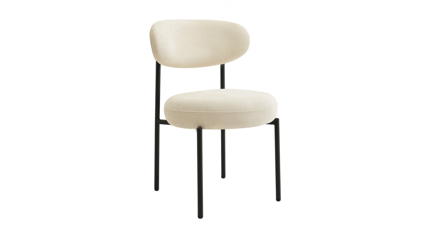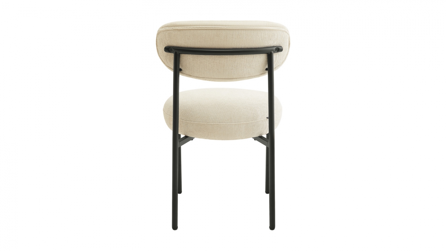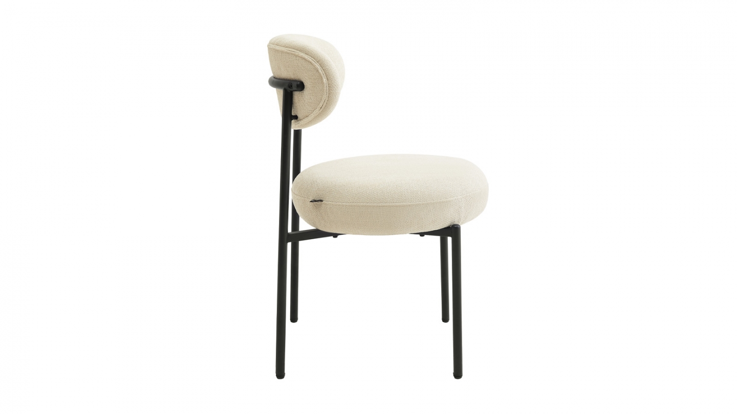 Rupture de stockLot de 2 chaises de salle à manger - Evora• Revêtement : Tissu bouclé 600 g/m²• Couleur : Beige• Structure en métal noir• Garnissage de l'assise : mousse 28 kg/m3• Garnissage du dossier : mousse 24 kg/m3• Hauteur d'assise : 50 cm• Profondeur d'assise : 47 cm• Largeur d'assise : 47 cm• Dimensions totales : 47,5 x 56 x 86 cm
